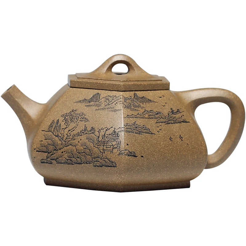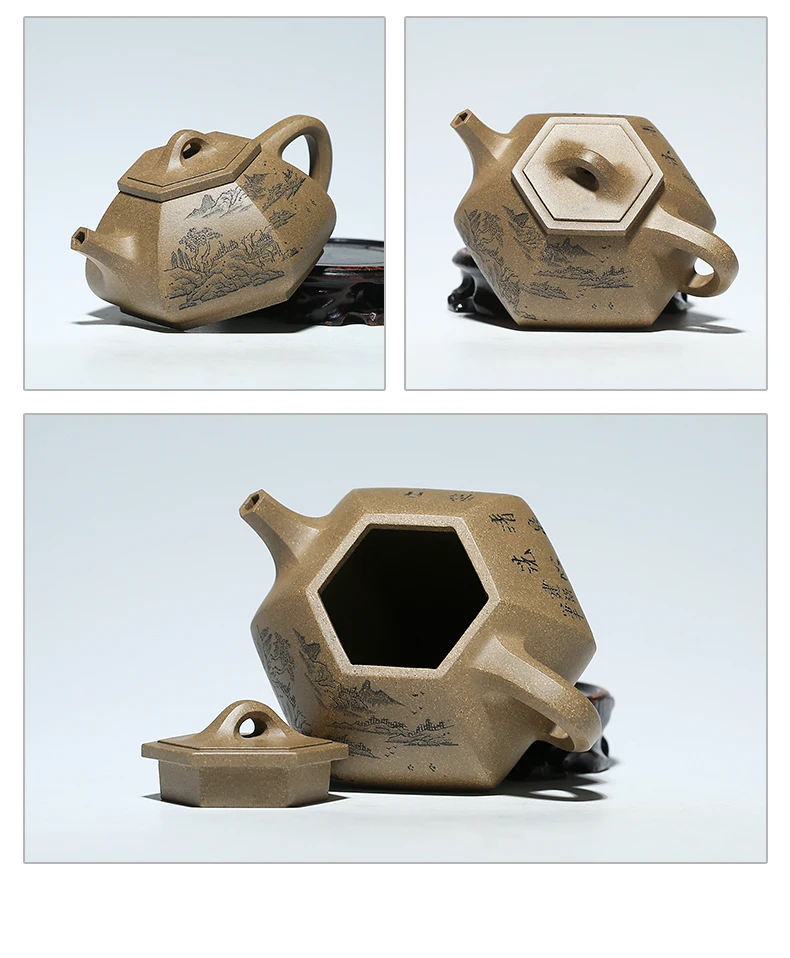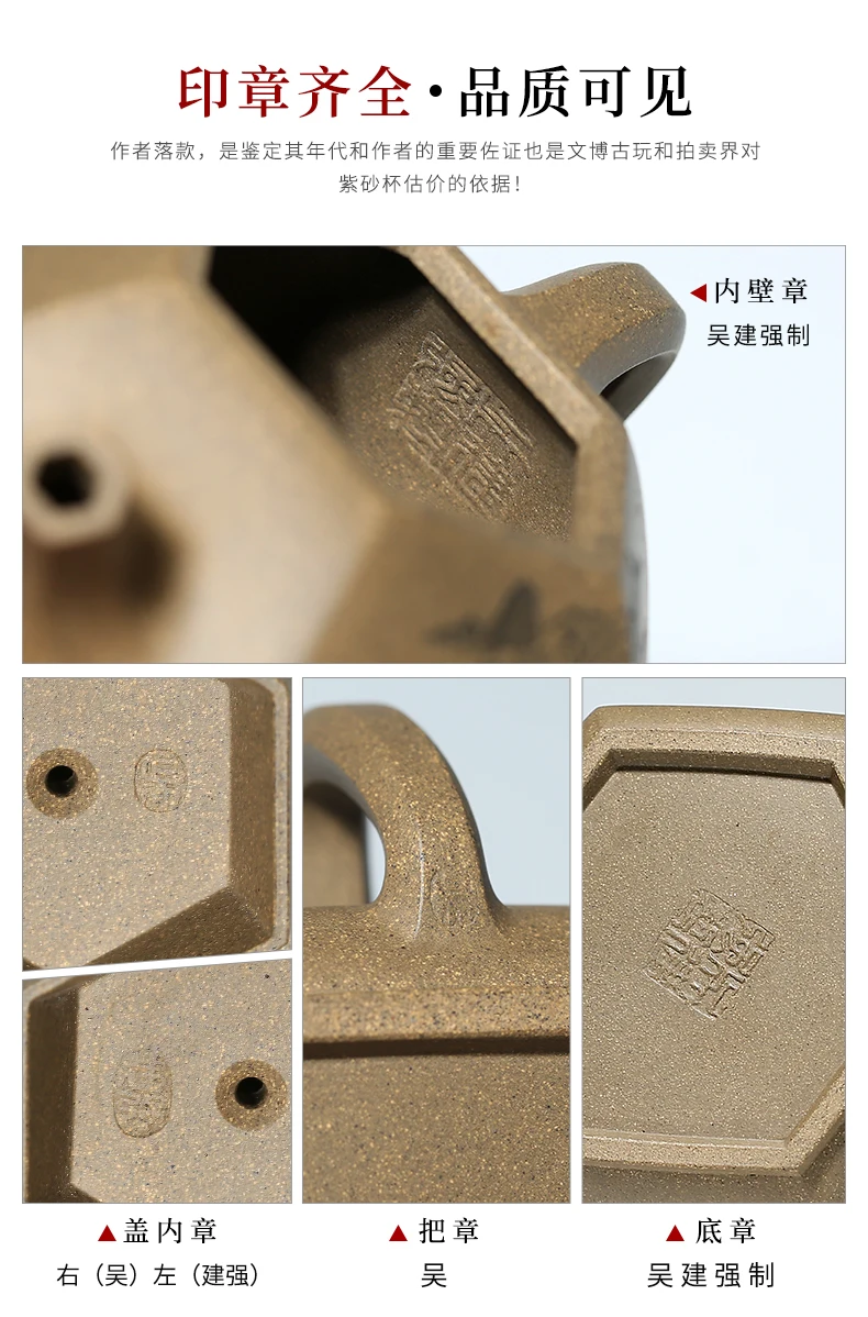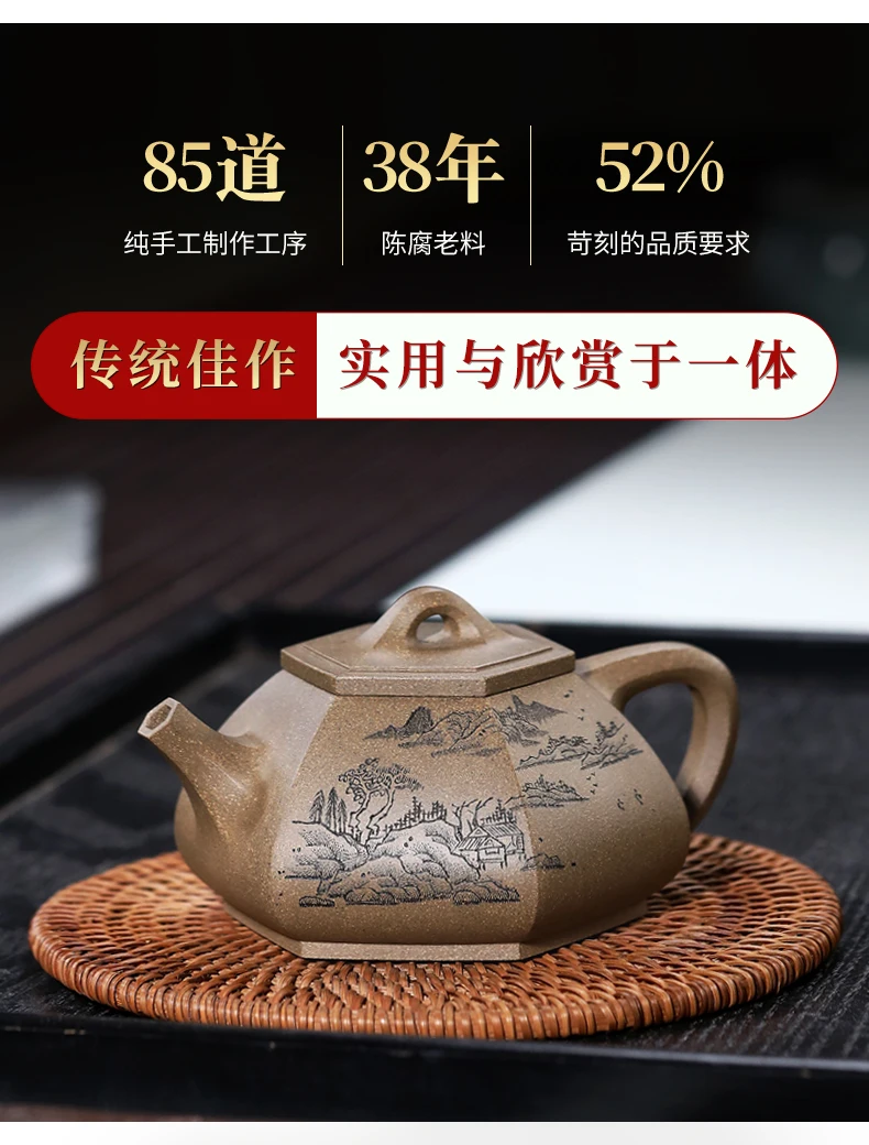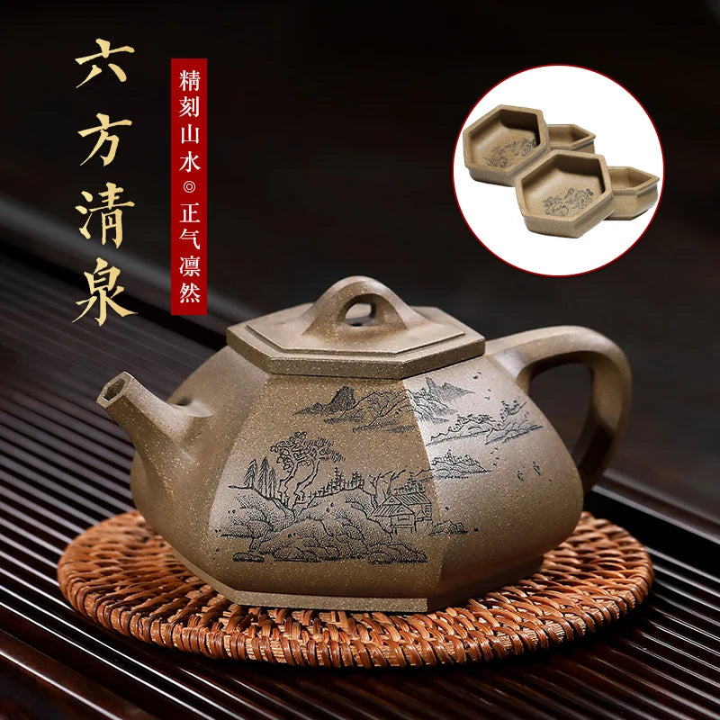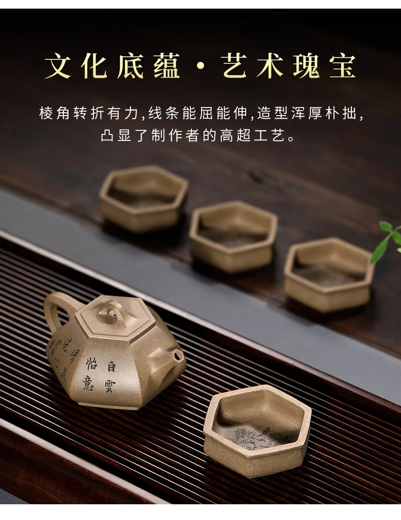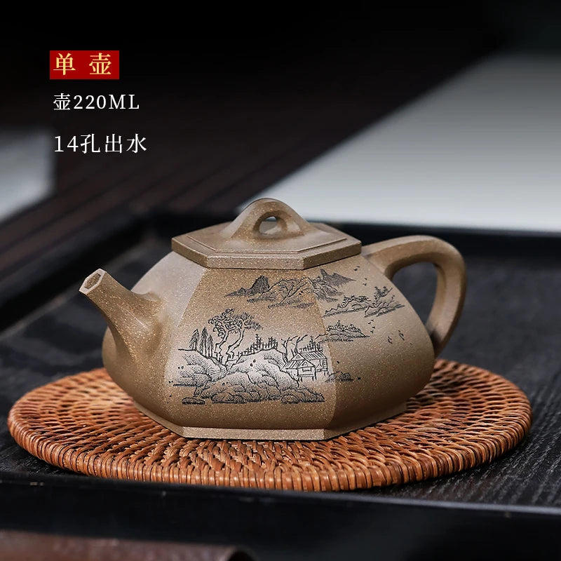 |A clay Yixing famous purple clay teapot craftsman's sketch square pot non ceramic household tea brewing set