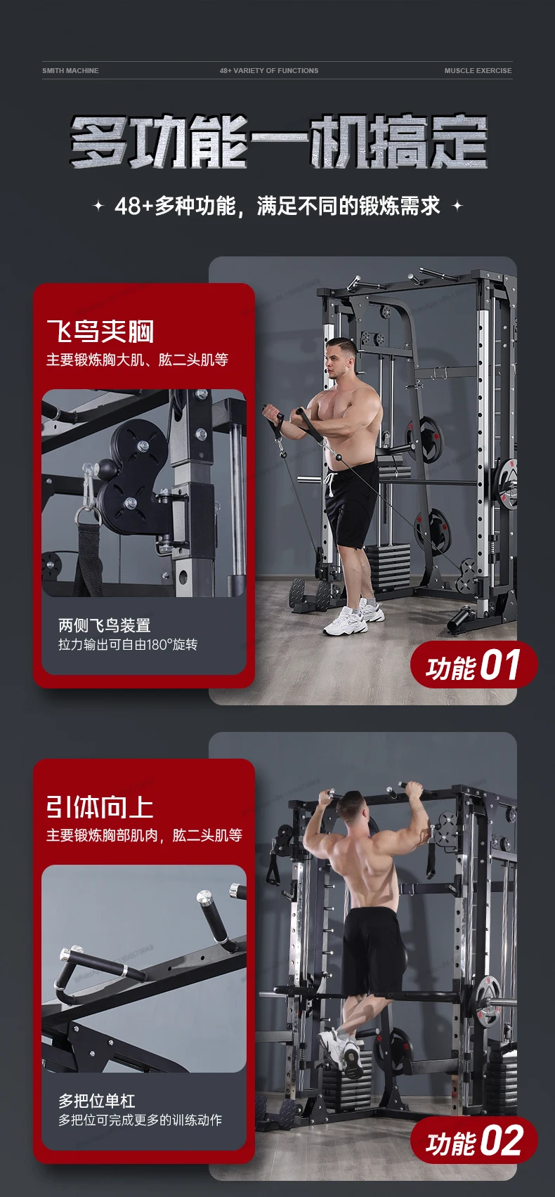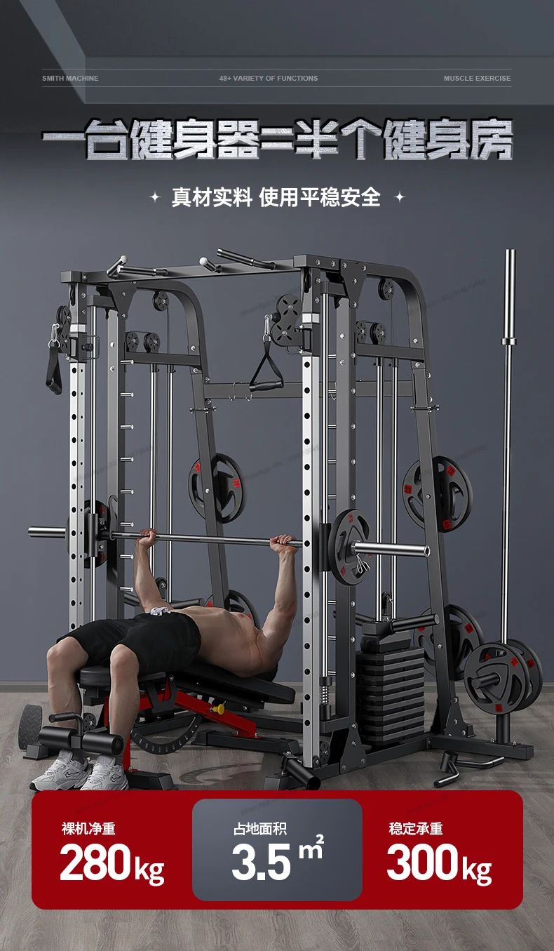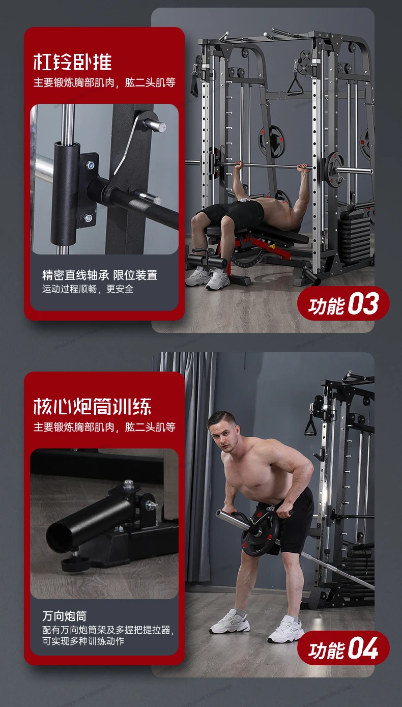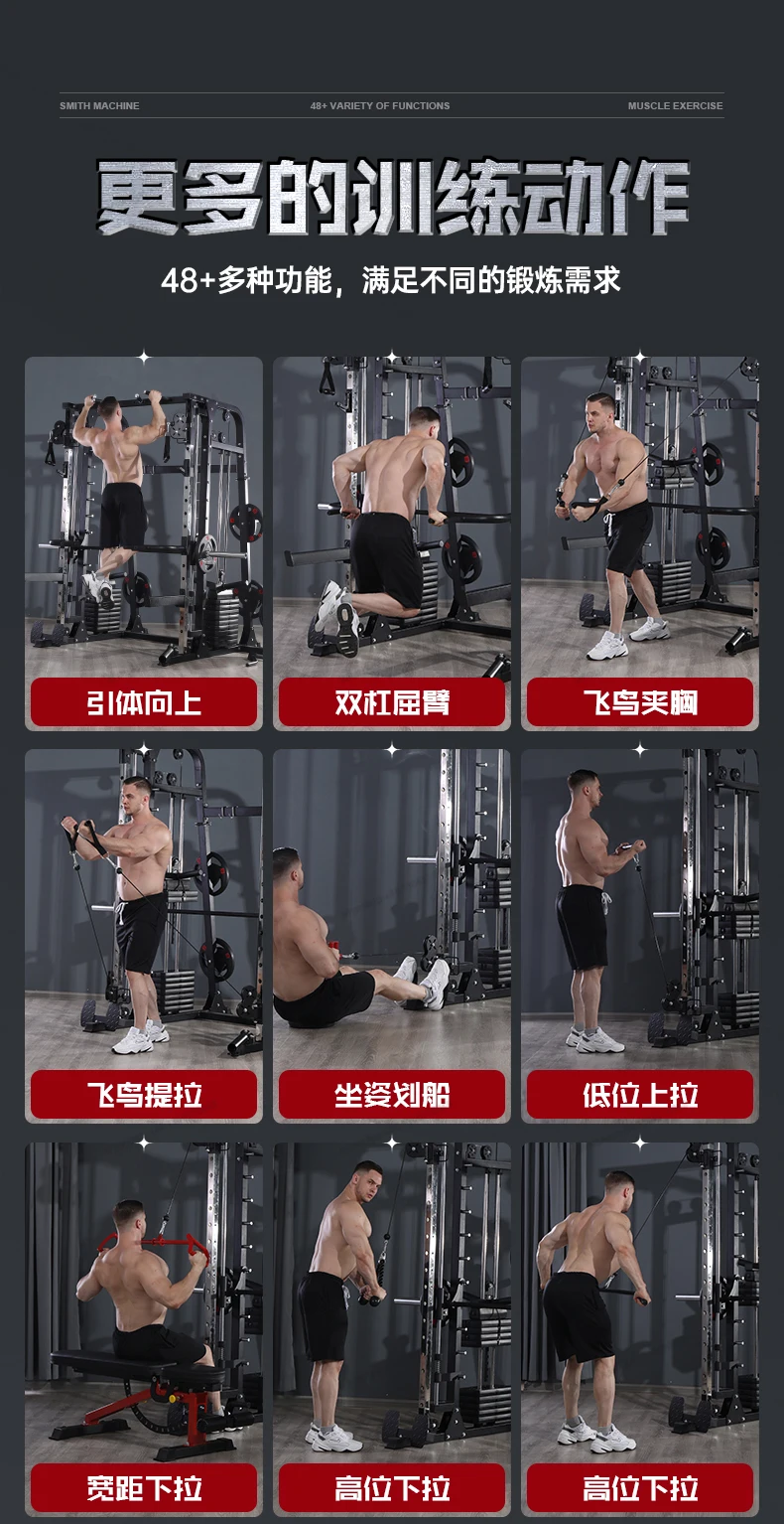 A complete set of commercial equipment for the gym, a high level pull-down stand for back and leg training comprehensive trainer