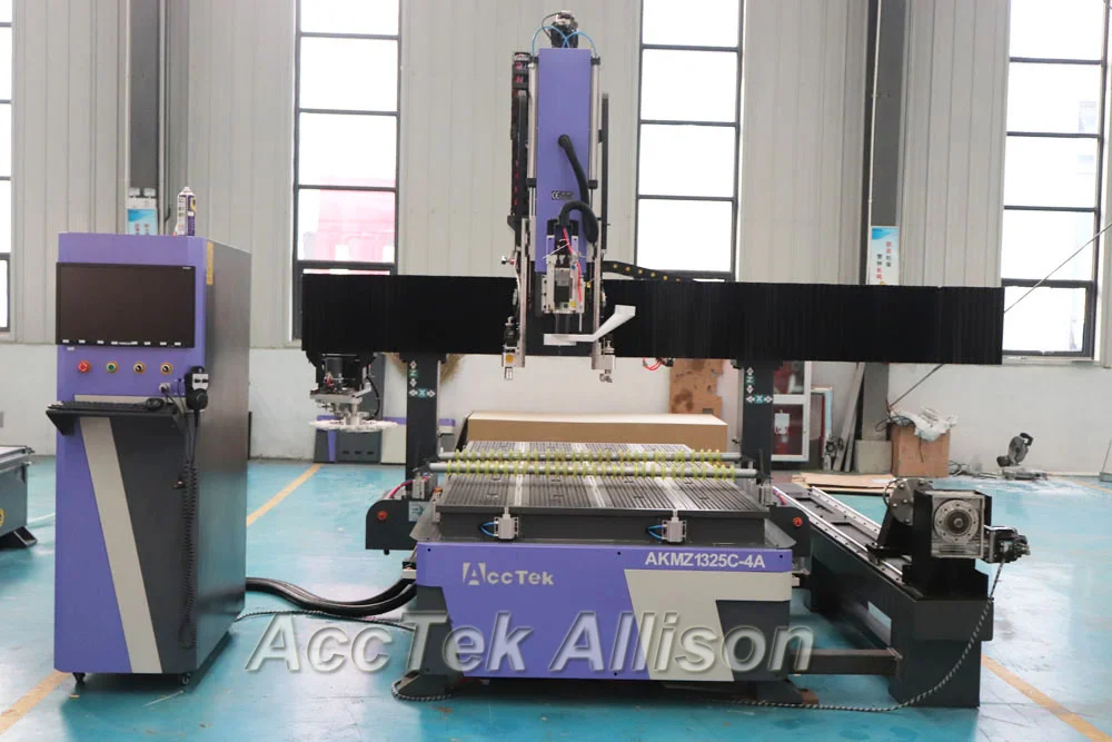 AccTek 4 Axis Cnc Router Machine Included Oscillation Knife Cutting Head Auto Tool Change with Rotary Device