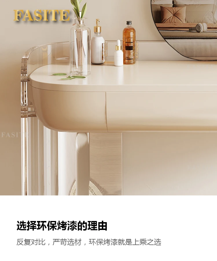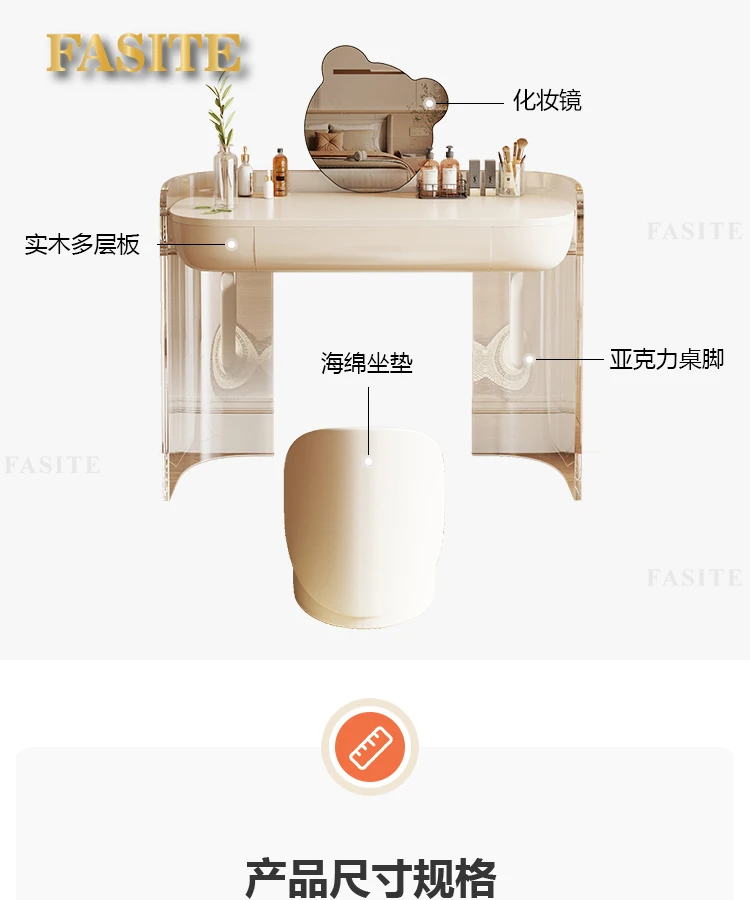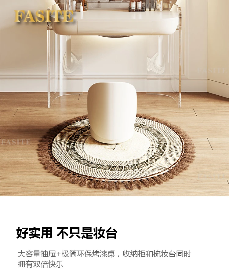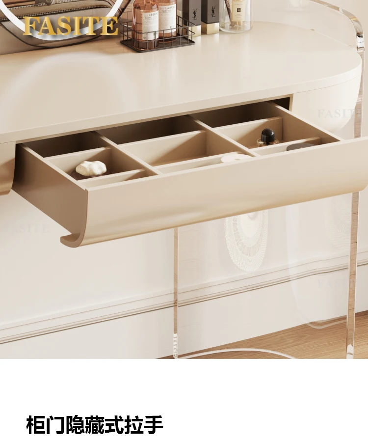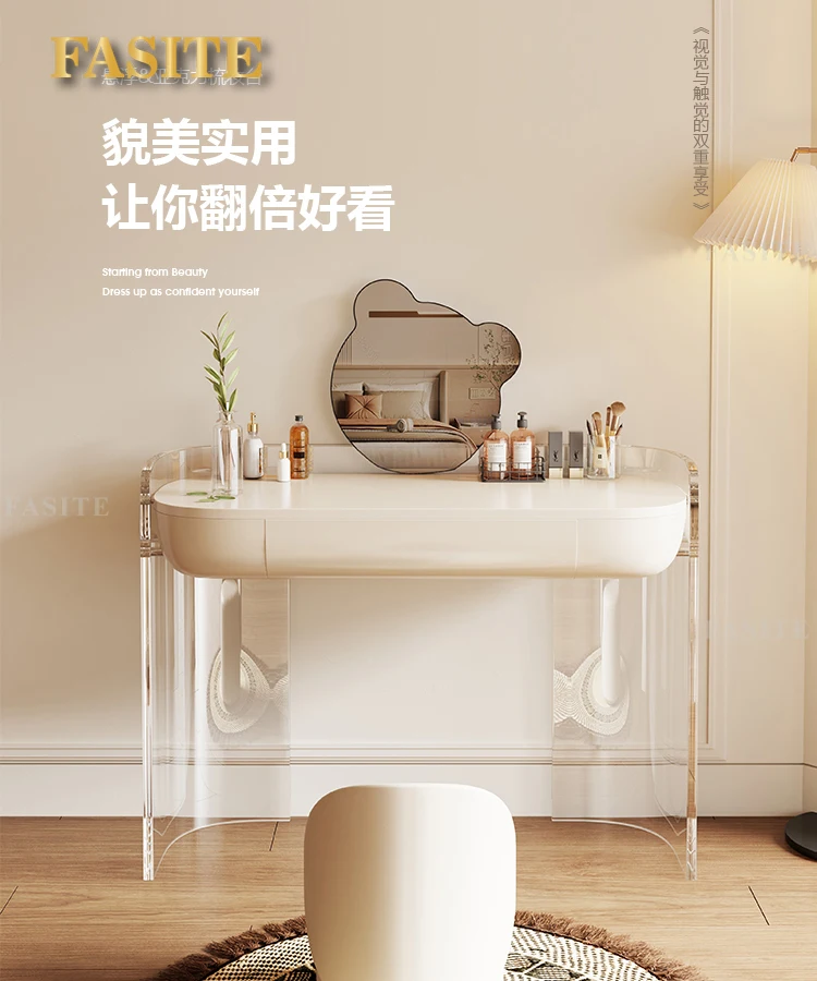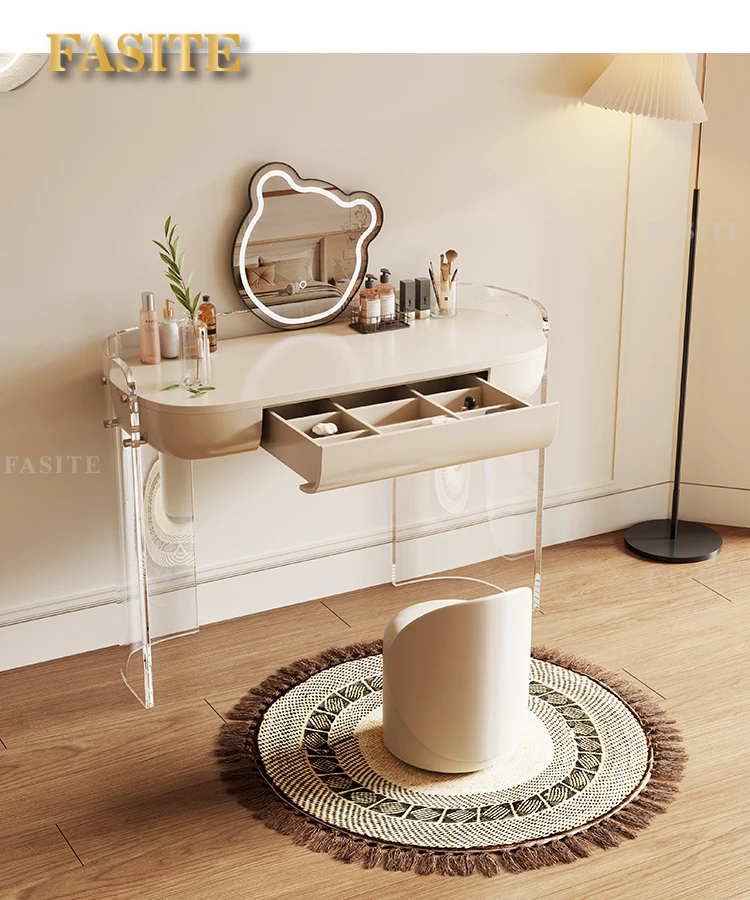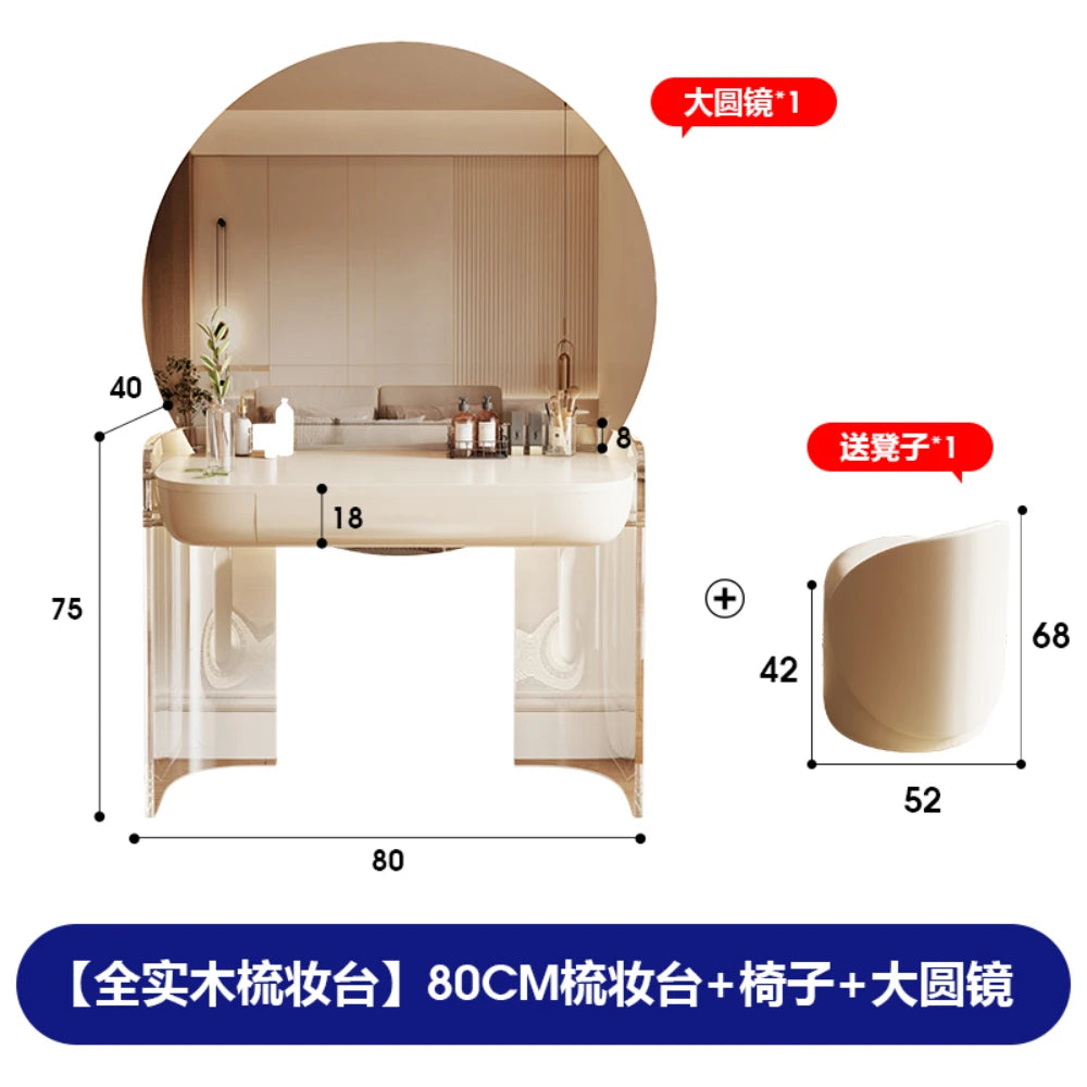 Acrylic minimalist cream style large round mirror small-sized makeup table