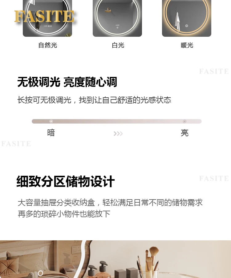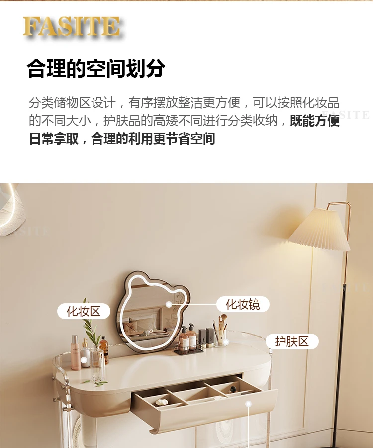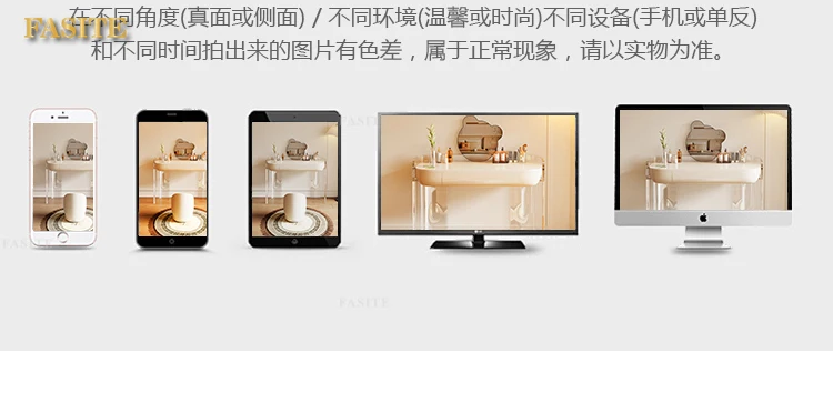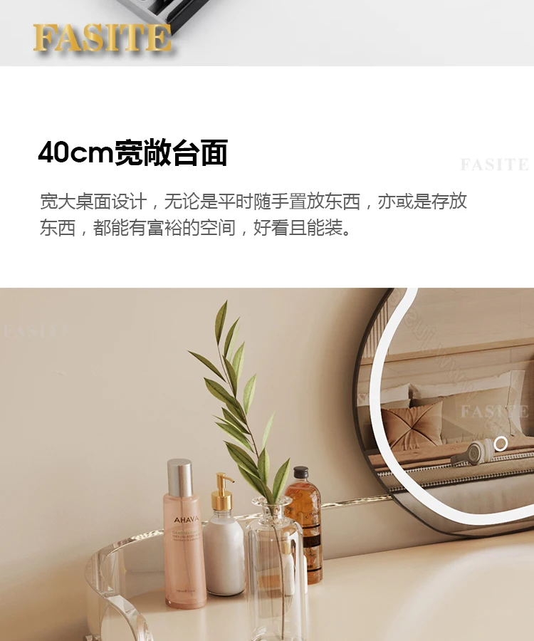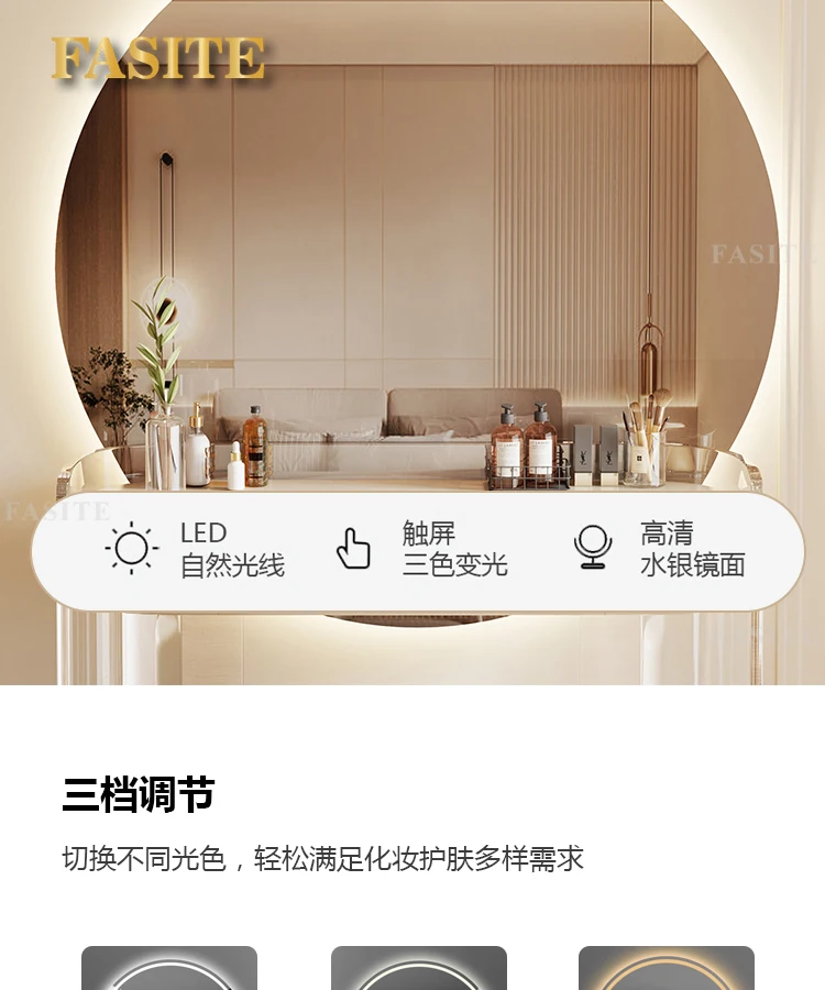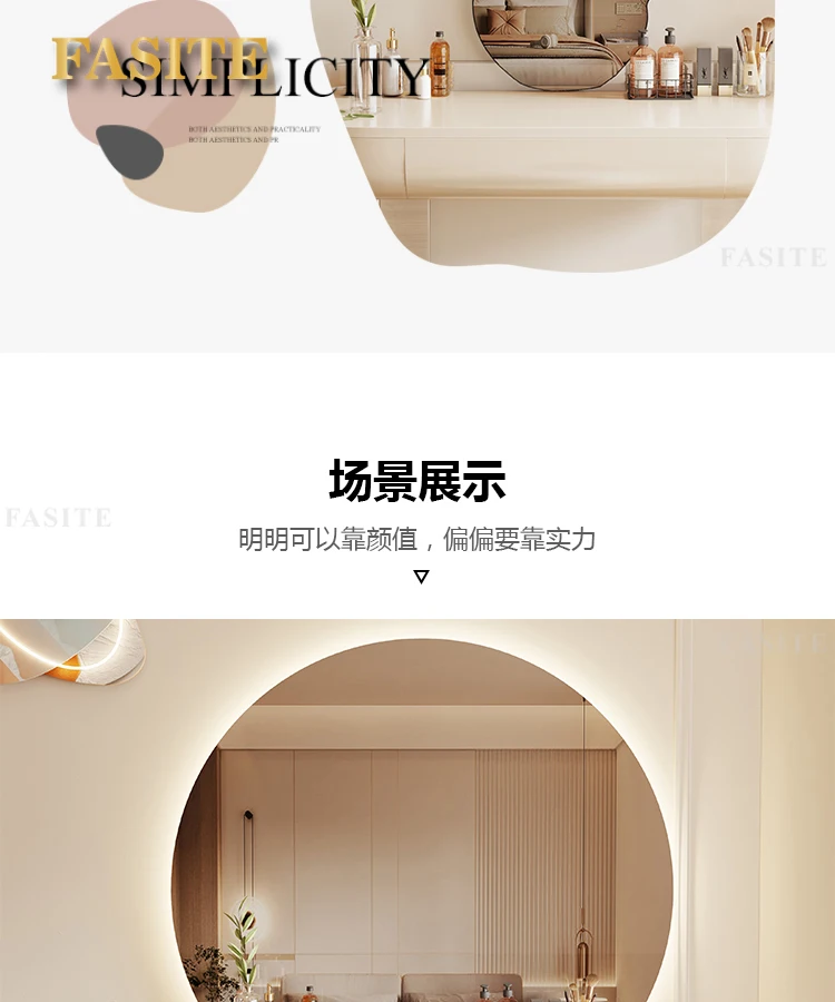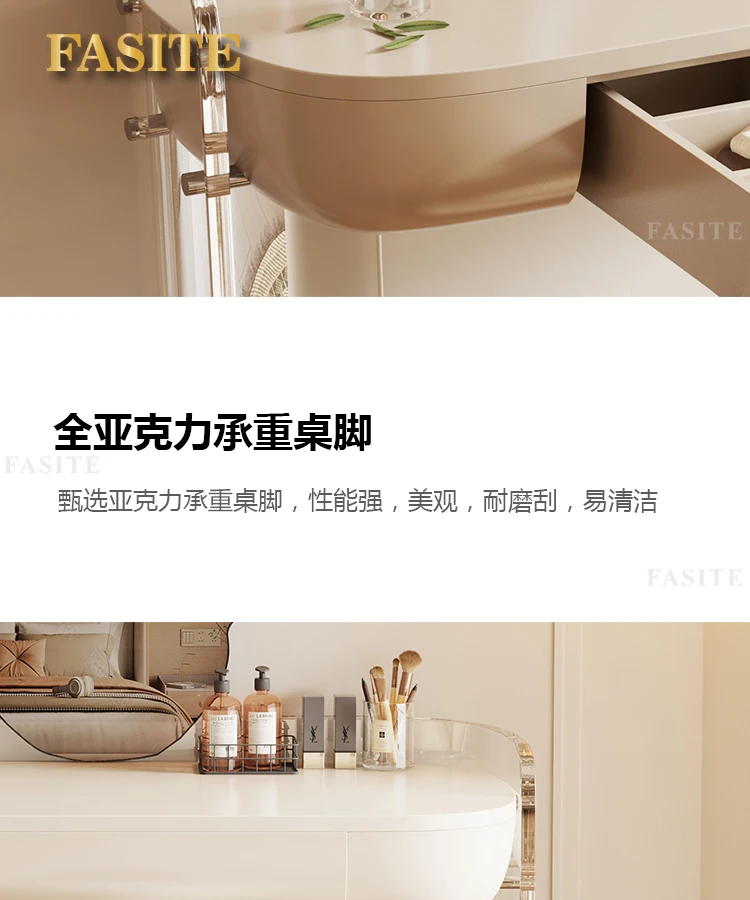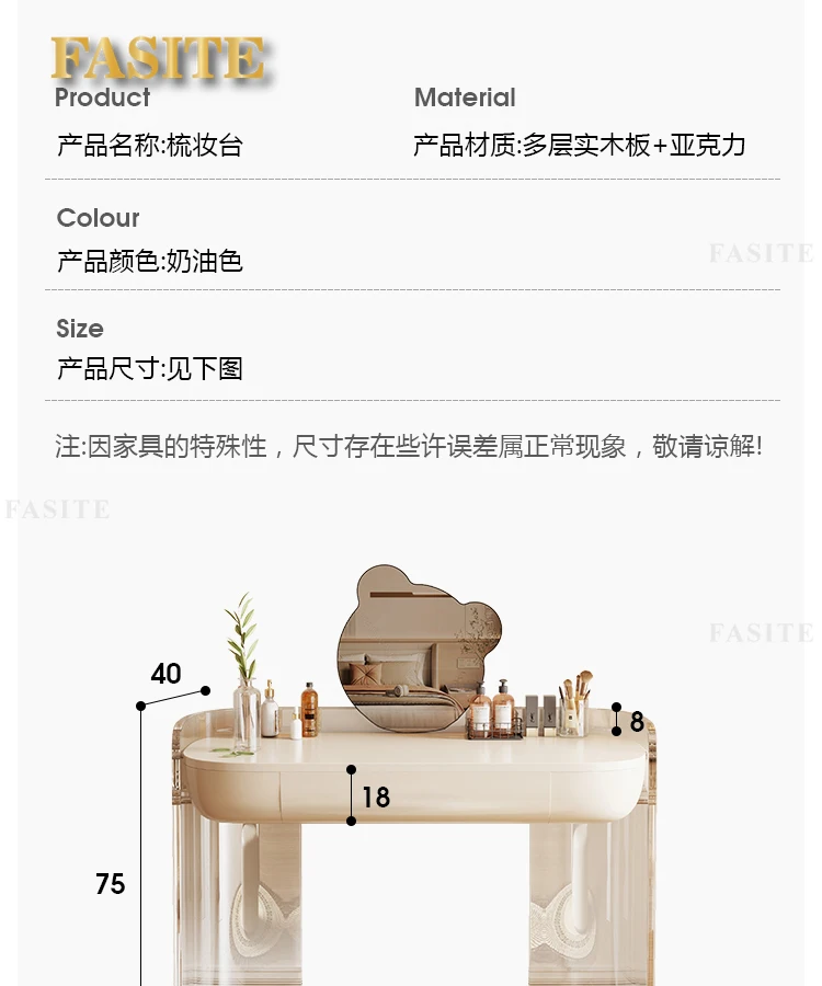 Acrylic minimalist cream style large round mirror small-sized makeup table