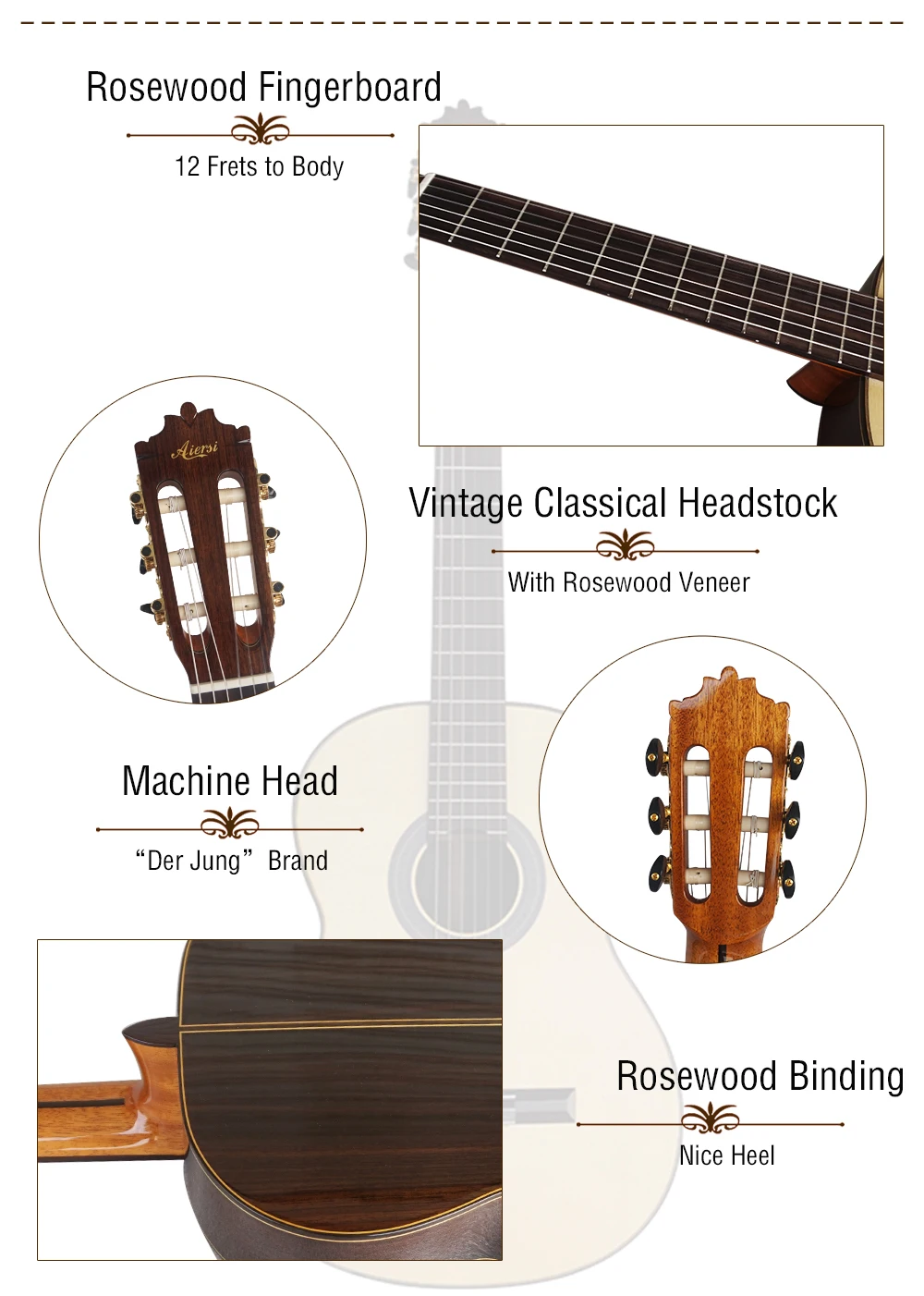 Aiersi Brand 39 Inch All Solid Rosewood Spanish Classical Guitar 6 String Musical instrument