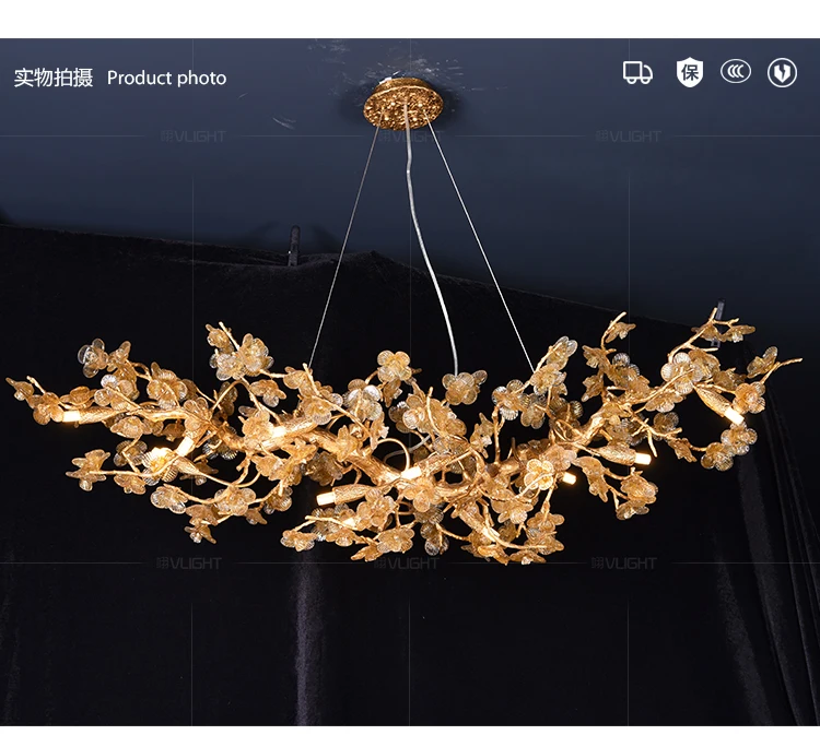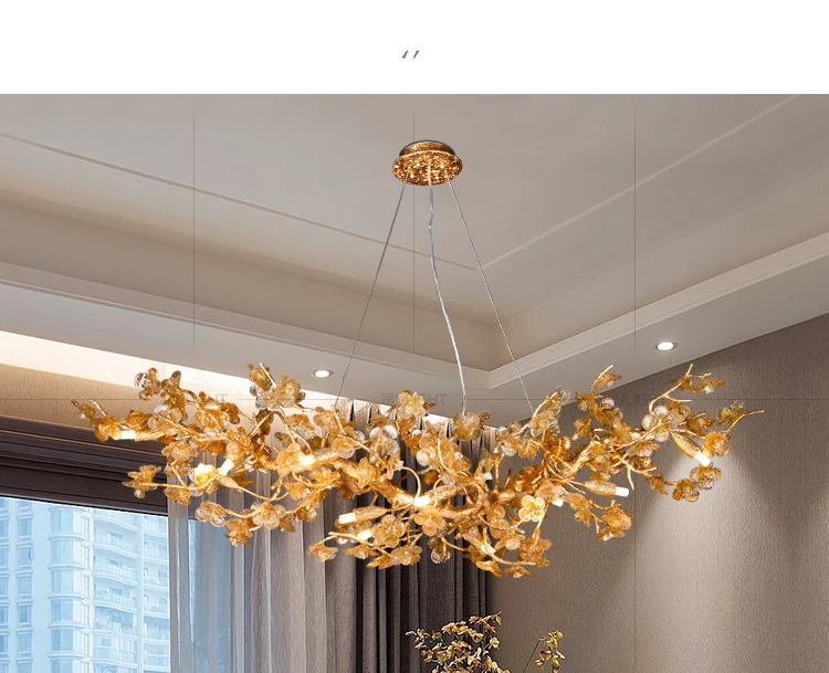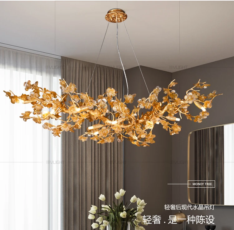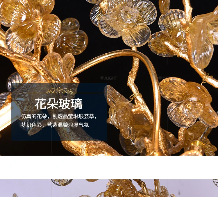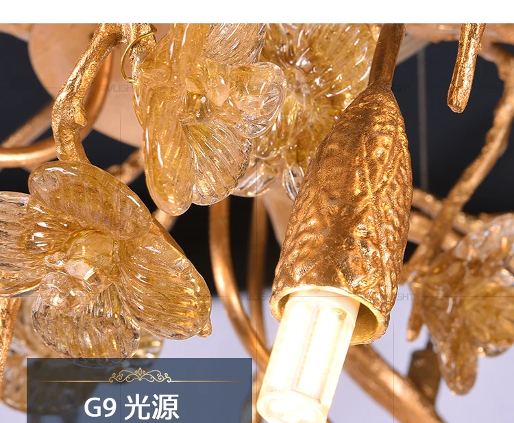 All Copper Chandelier Post-Modern Creative Lamp in the Living Room Chinese Glass Villa Tea Room Decoration Restaurant Lamps