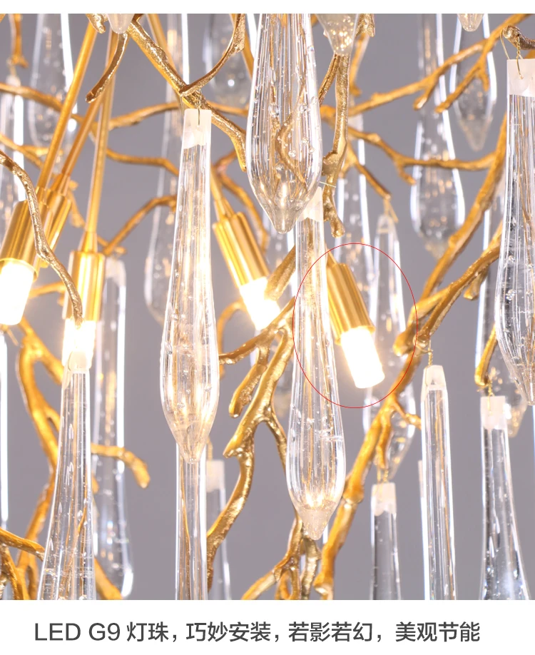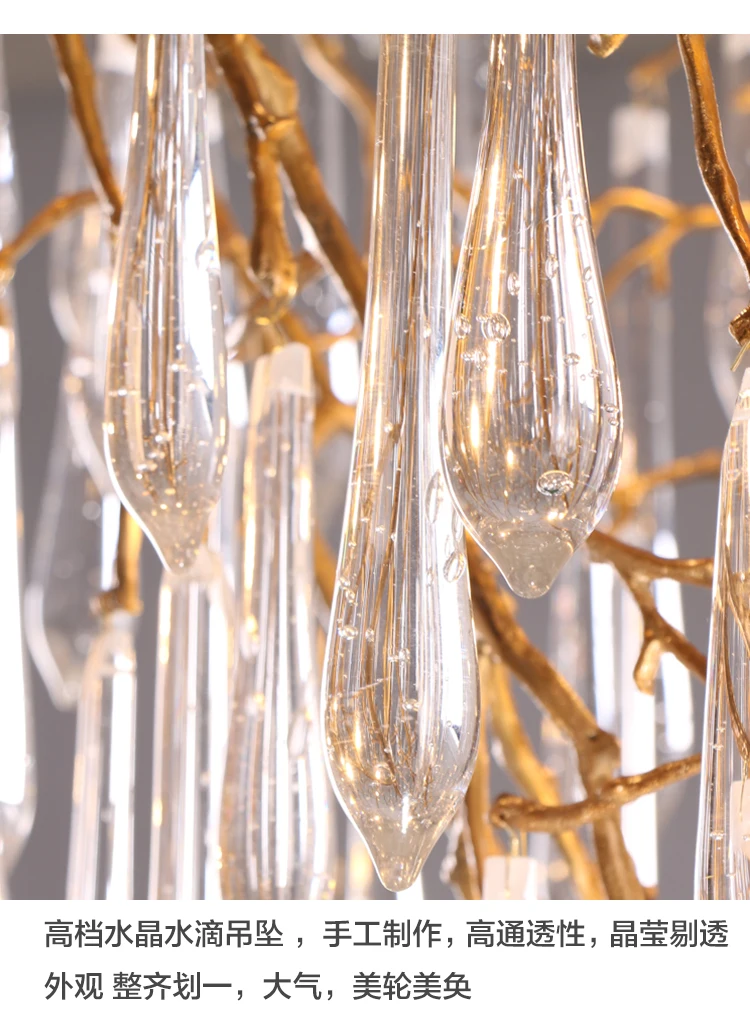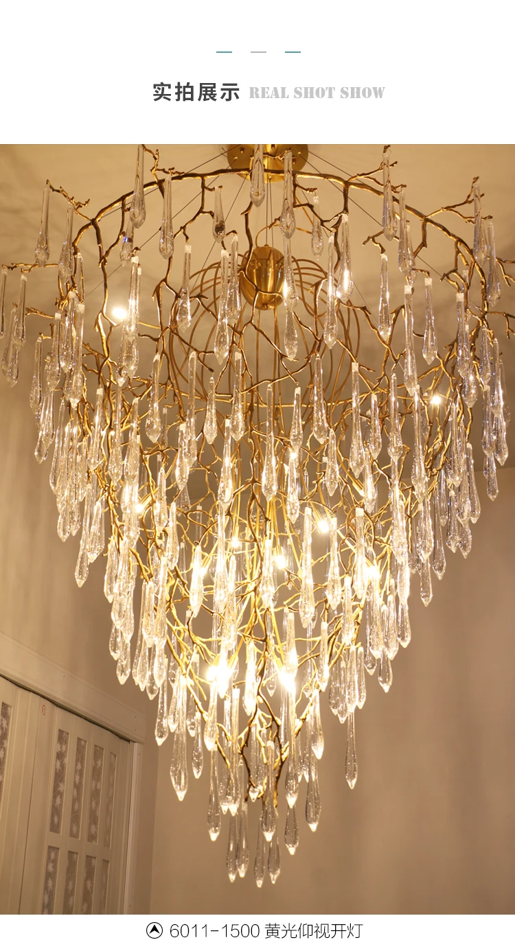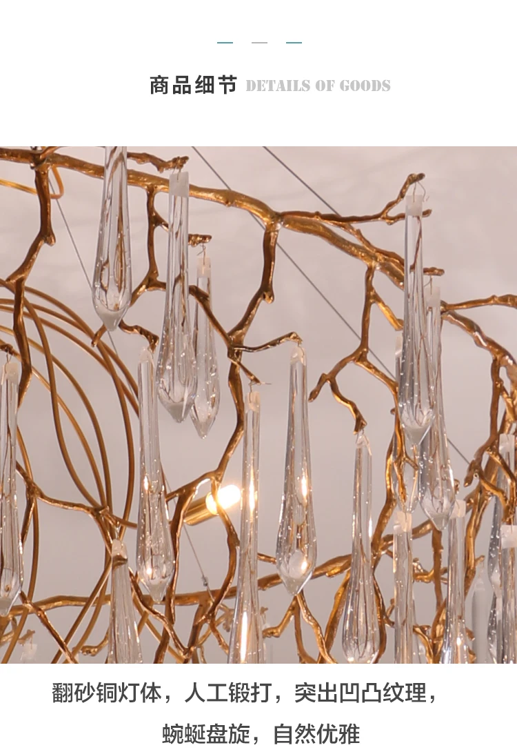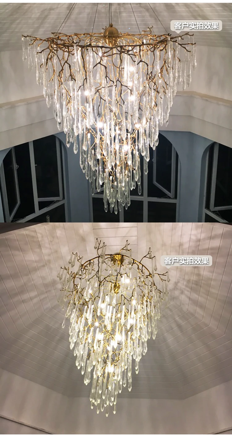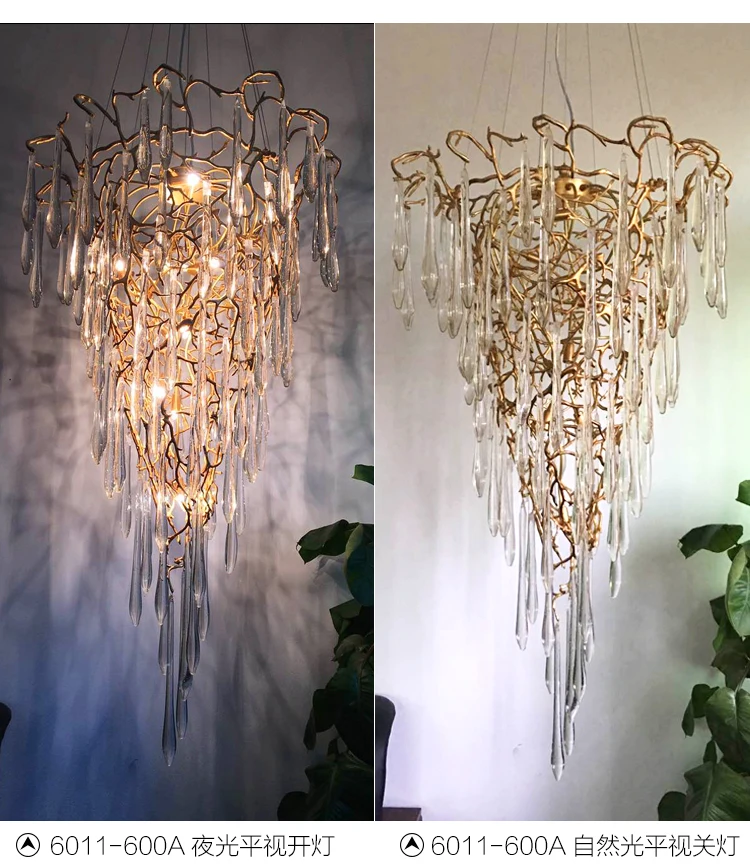 All copper creative personality tree branch glass special-shaped design chandelier villa living room hotel model room chandelier