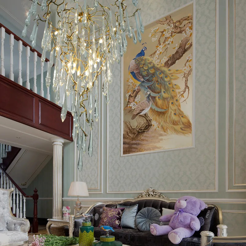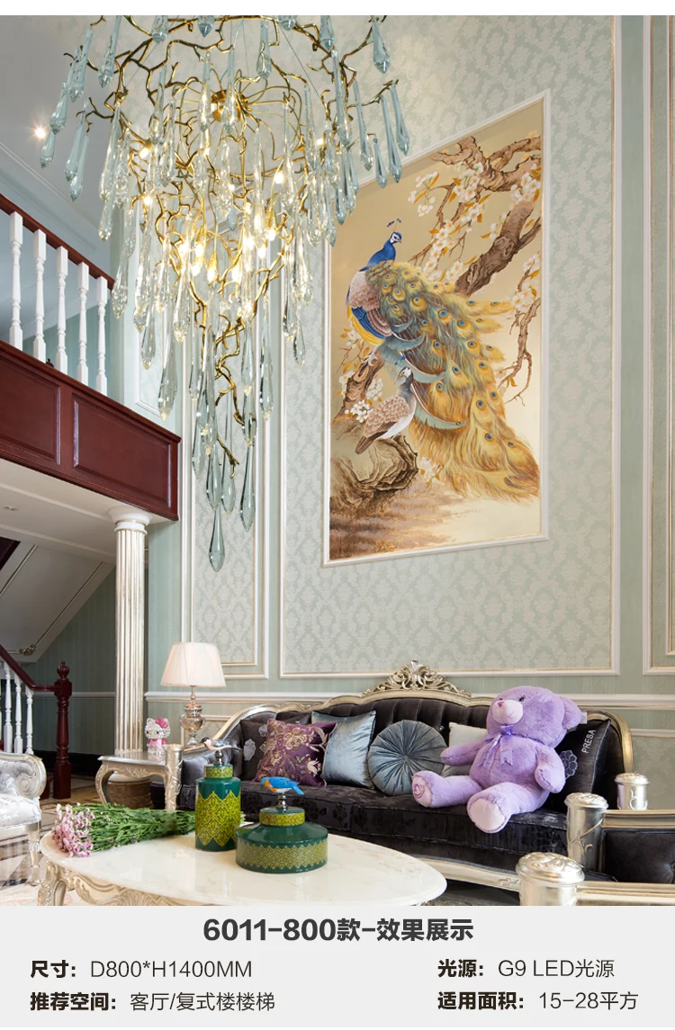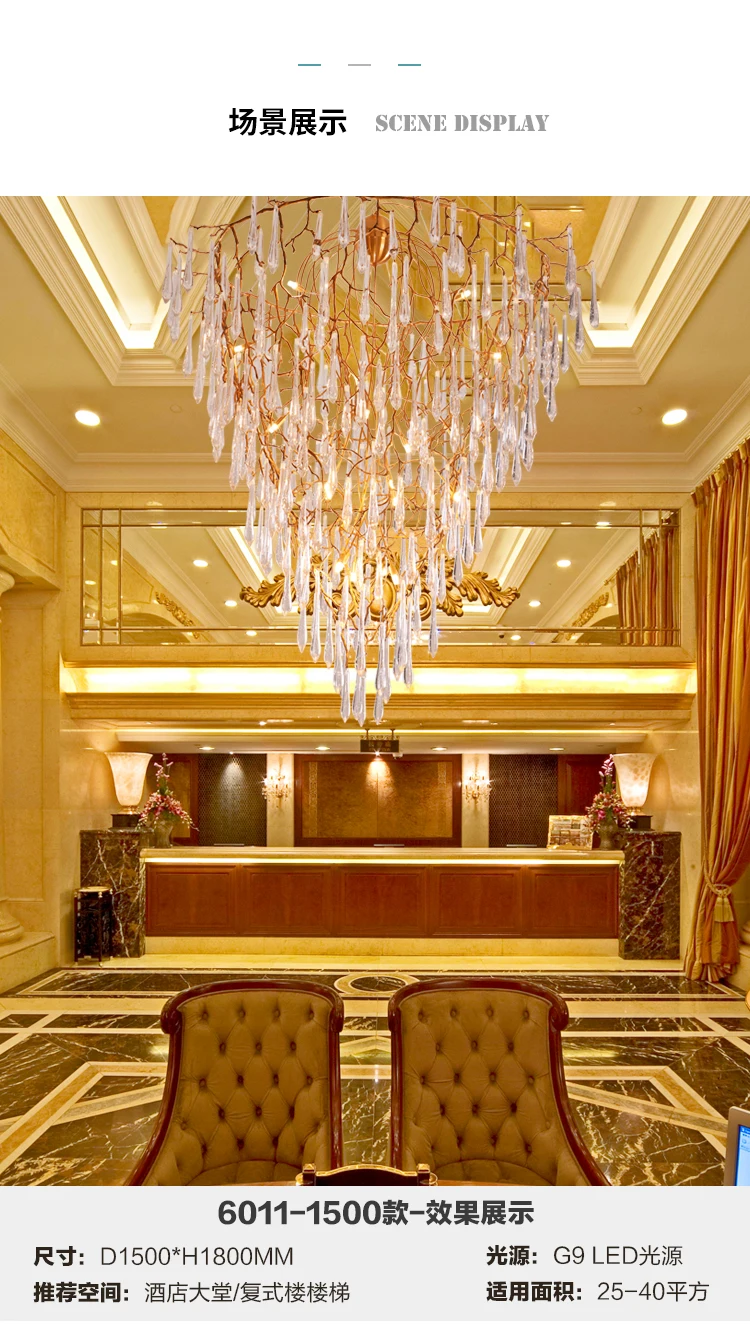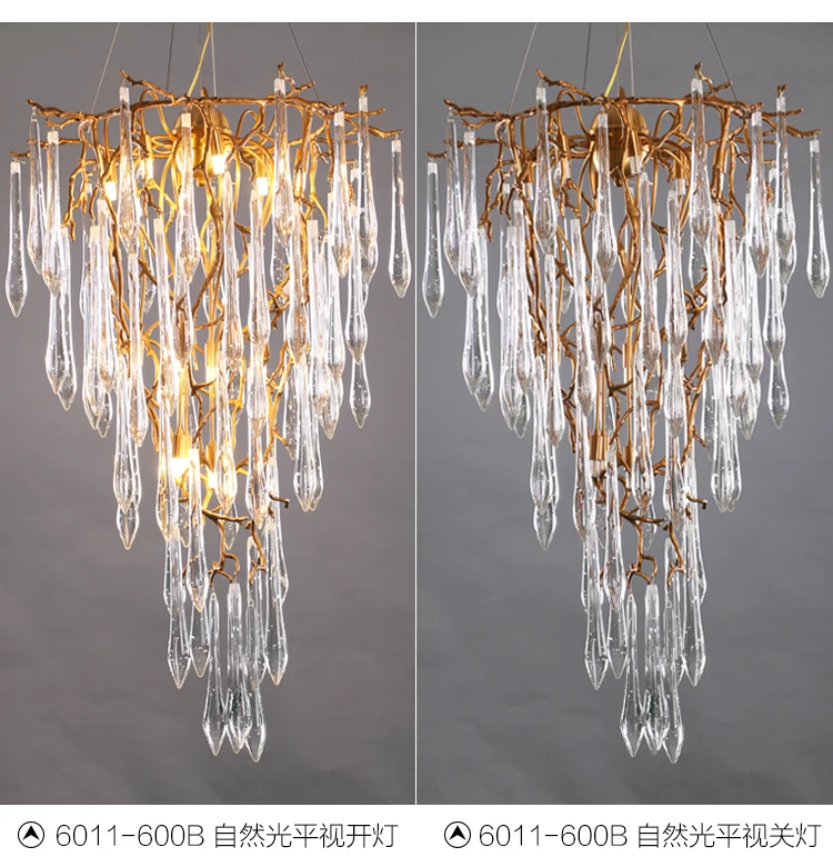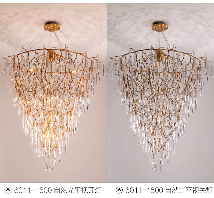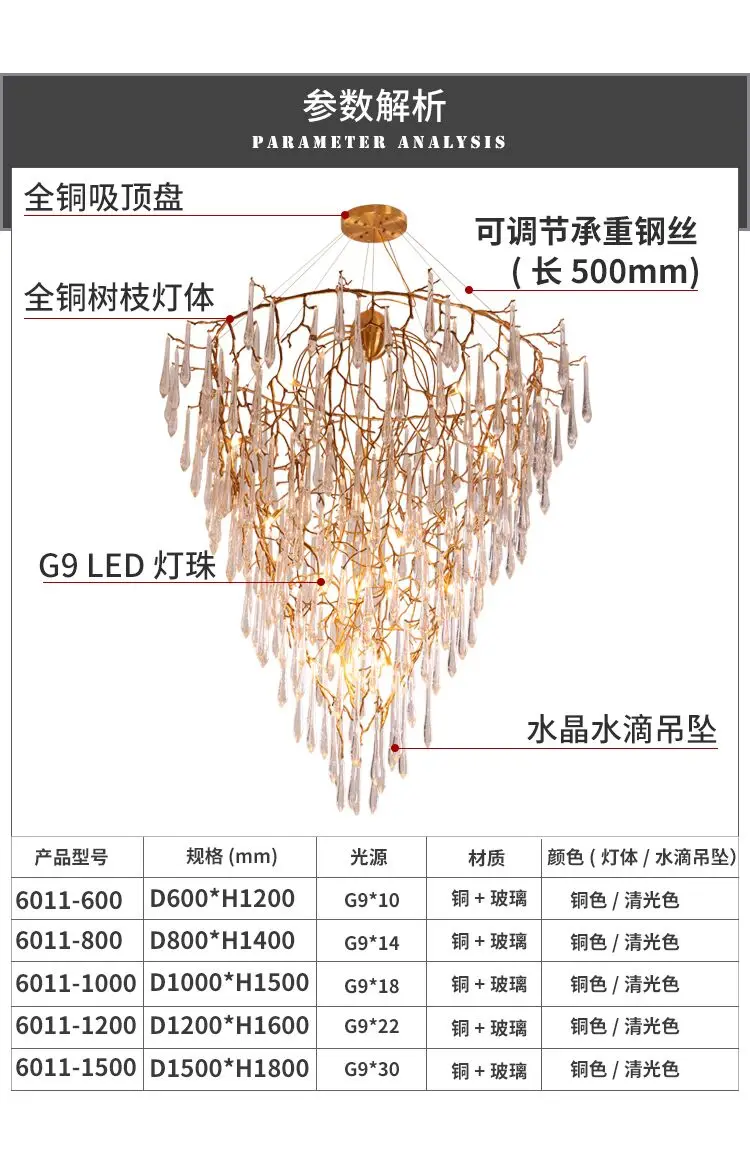 All copper creative personality tree branch glass special-shaped design chandelier villa living room hotel model room chandelier