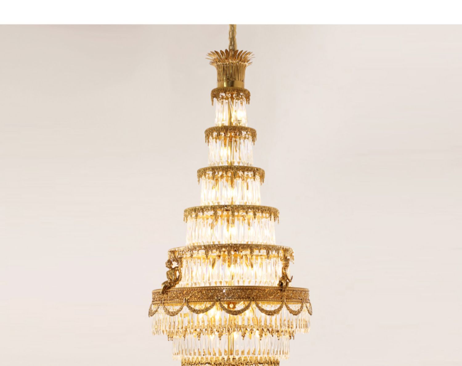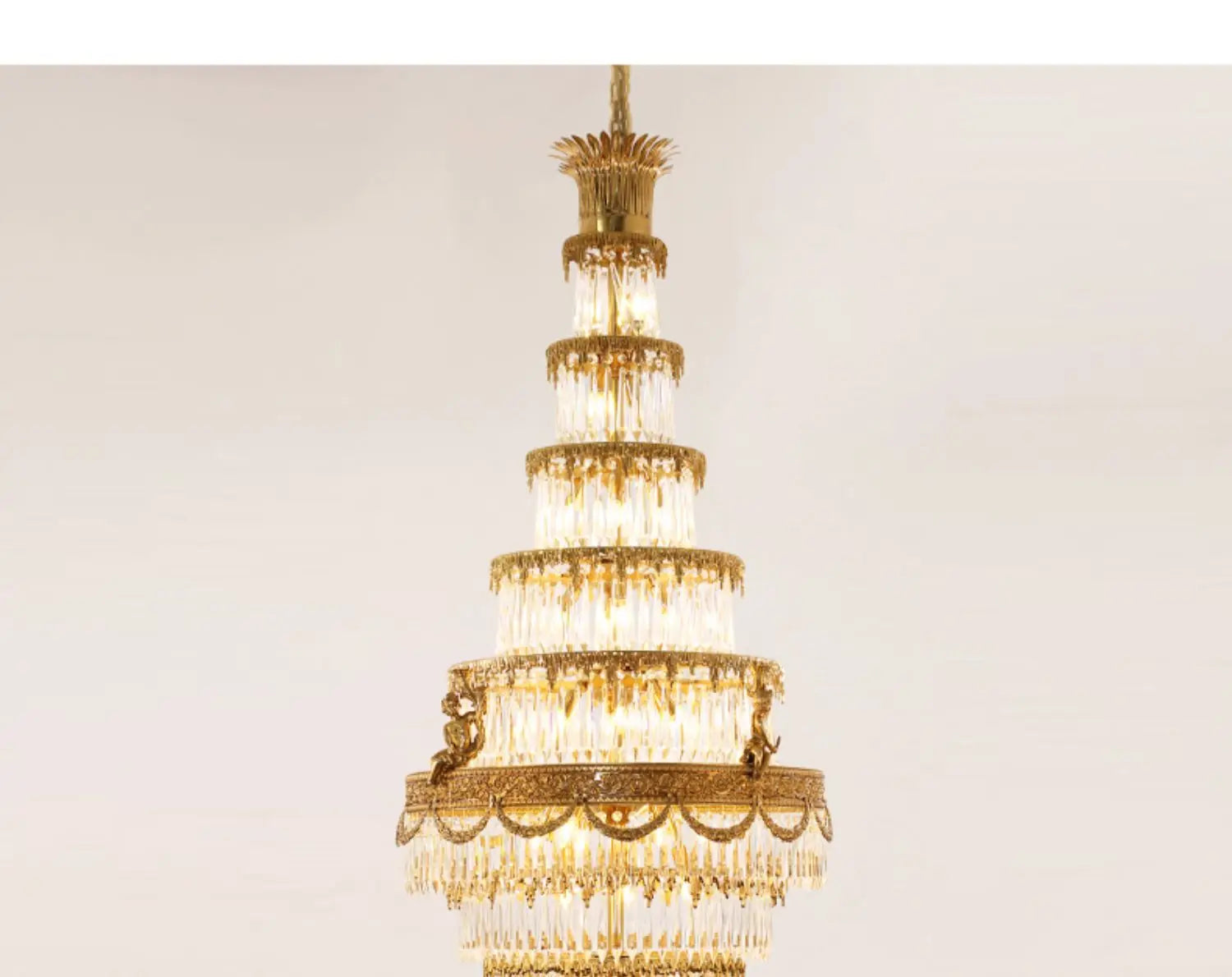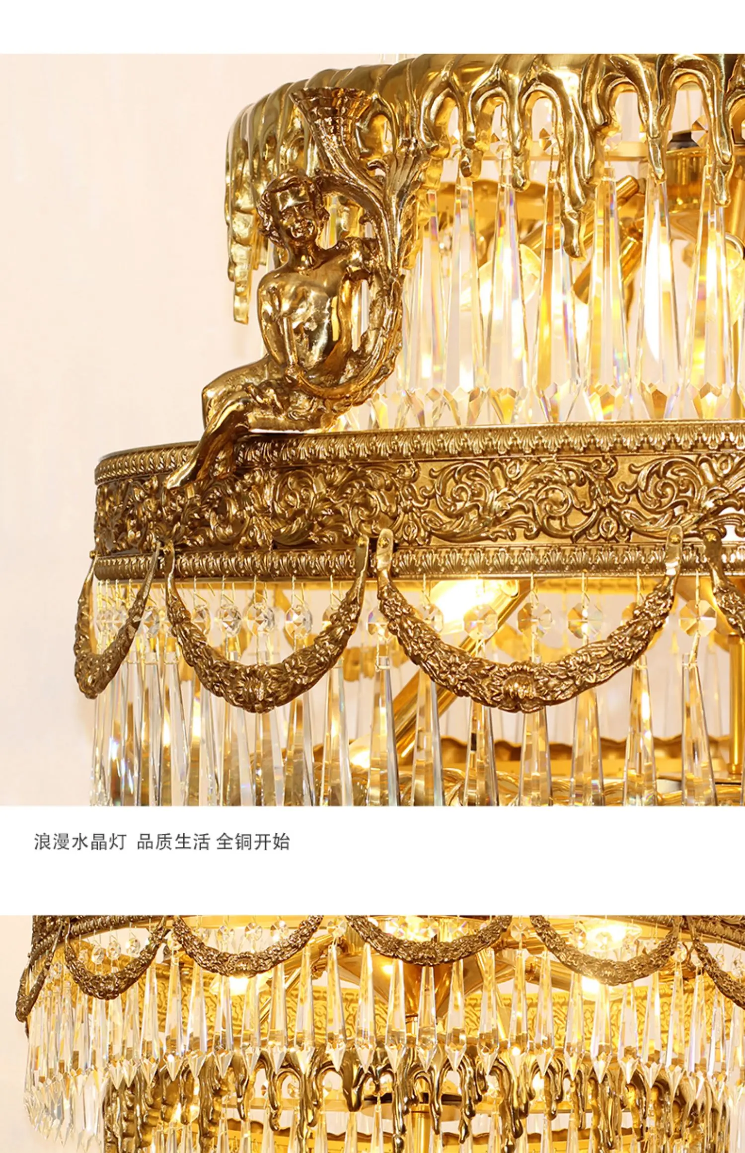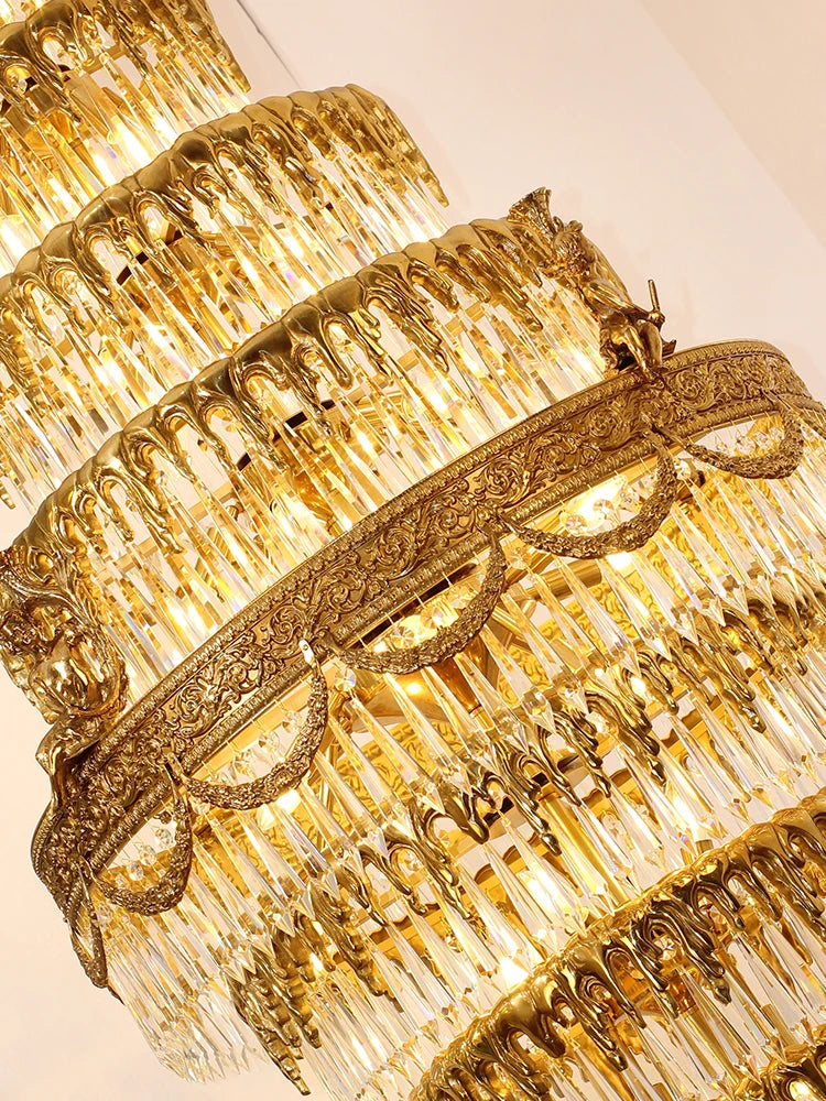 All-Copper Crystal Long Chandelier Stair Duplex Living Room Creative Luxury Villa Atmospheric Lamps