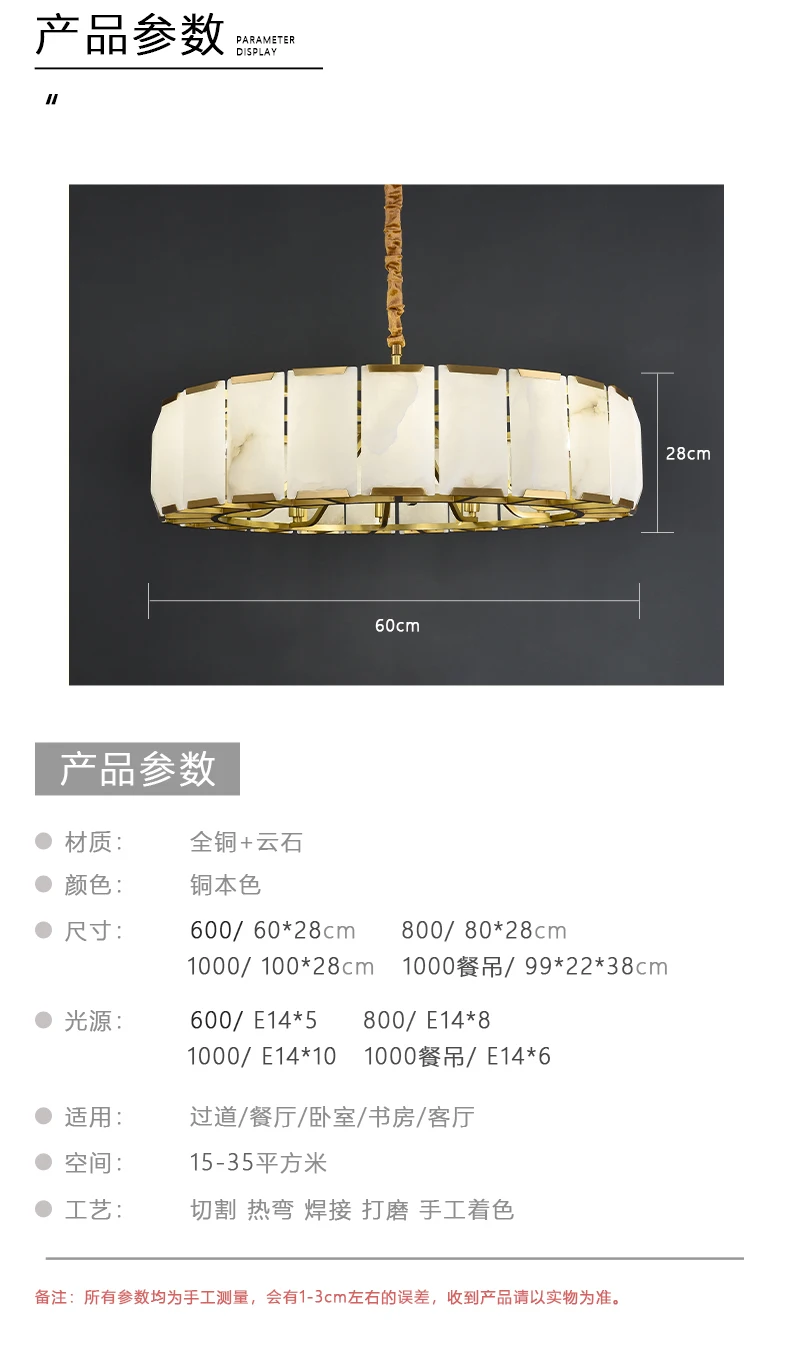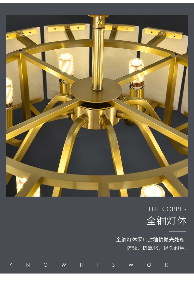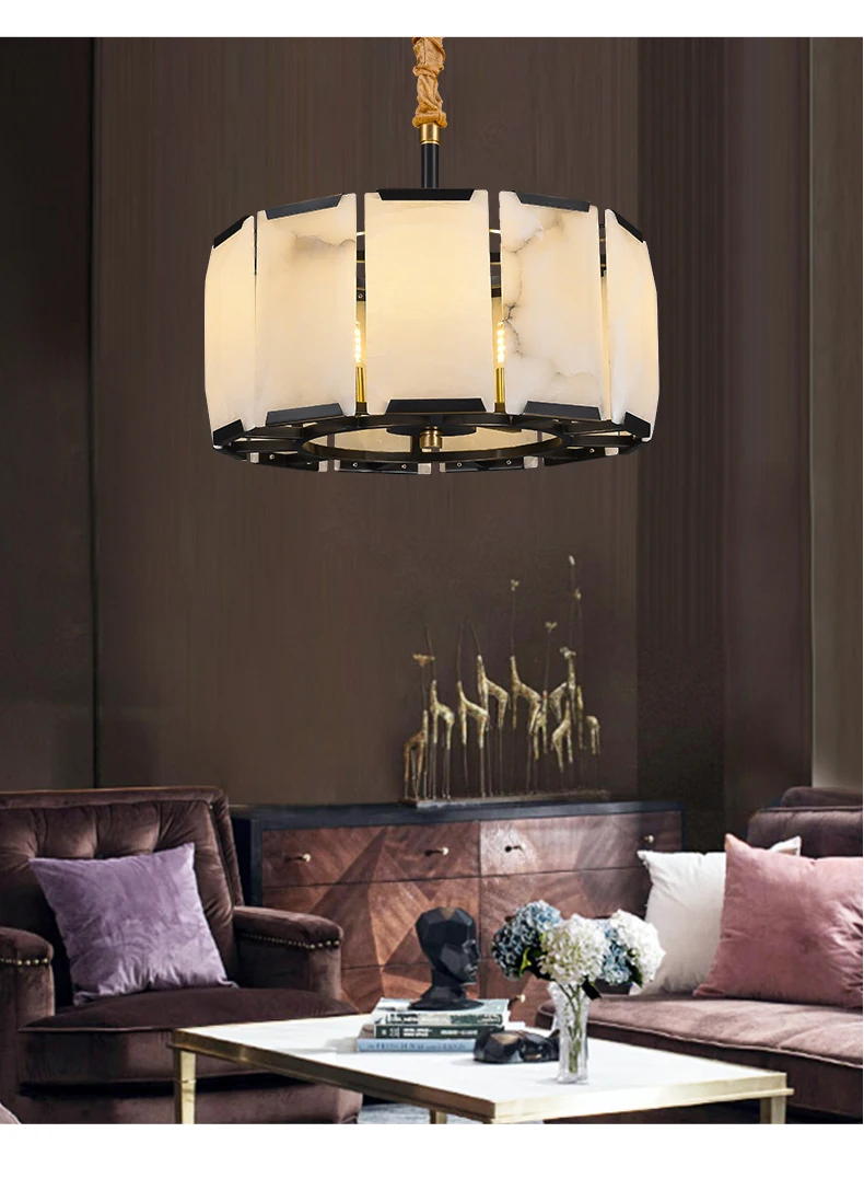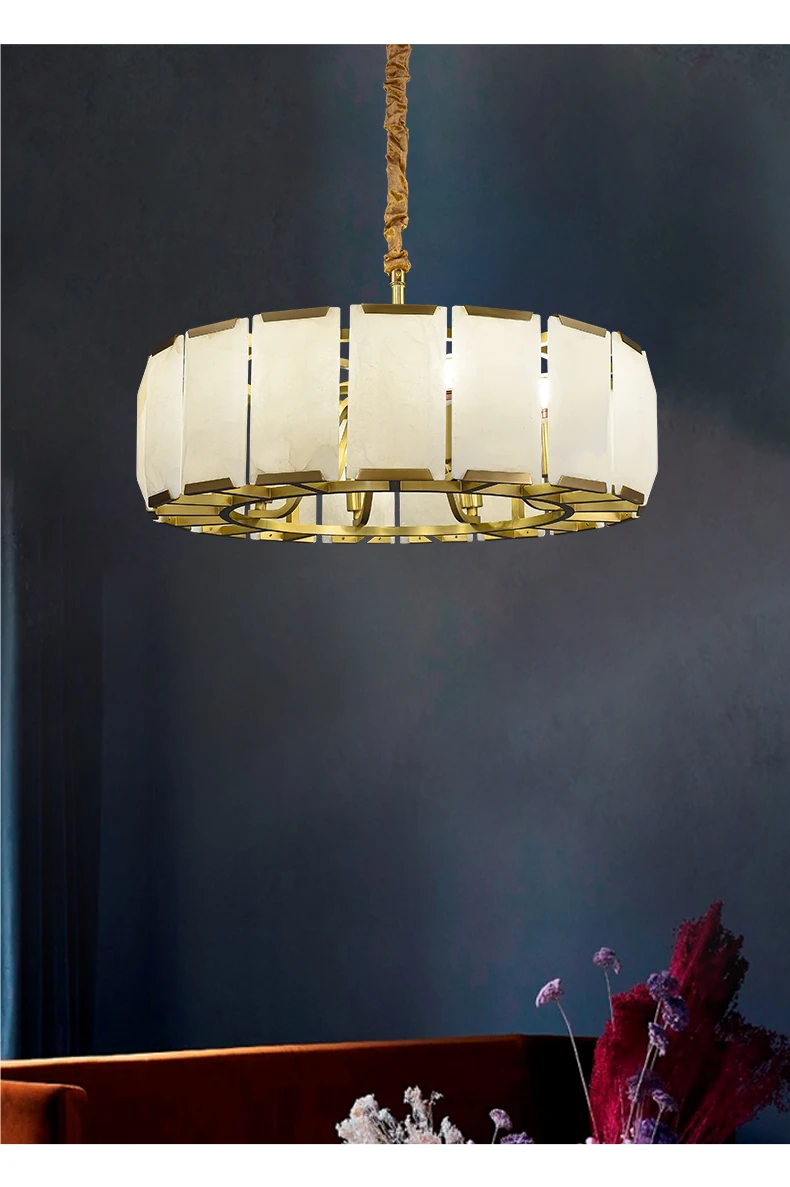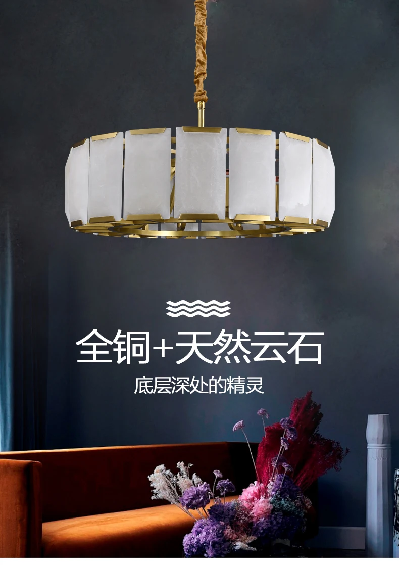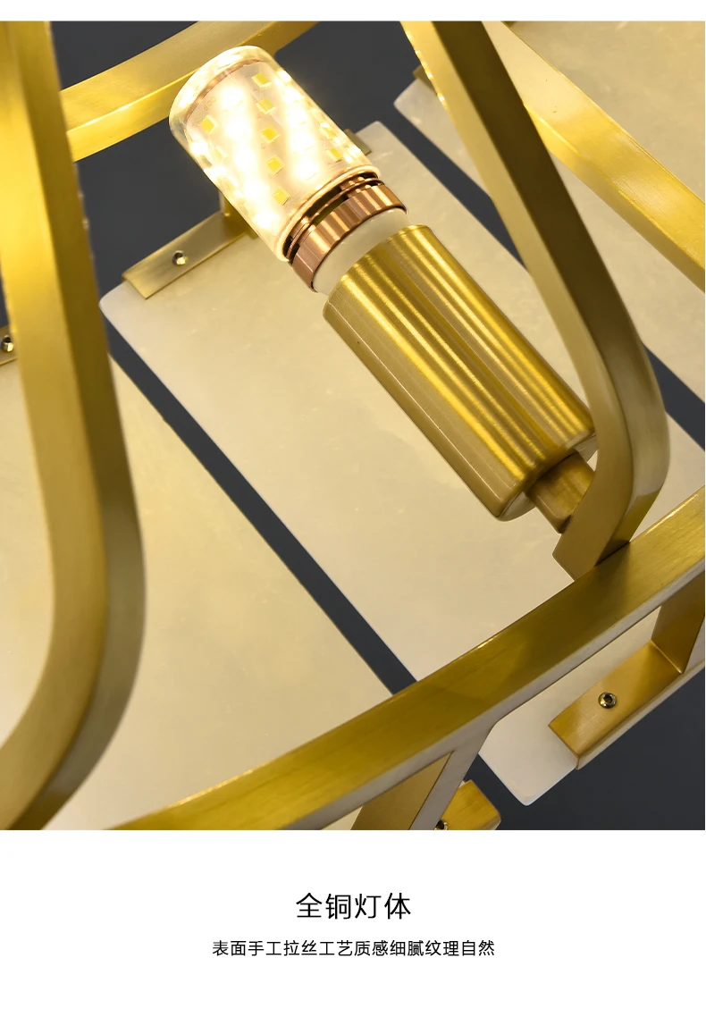 All copper marble chandelier living room dining room copper lamps light luxury modern villa hotel duplex building lighting
