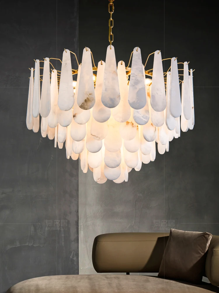 All-copper modern marble chandelier atmospheric villa hotel bedroom living room dining room model chandelier