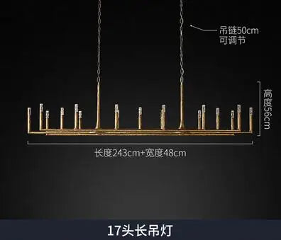 All-copper restaurant chandelier luxury villa club island Taiwan American branch retro lamps