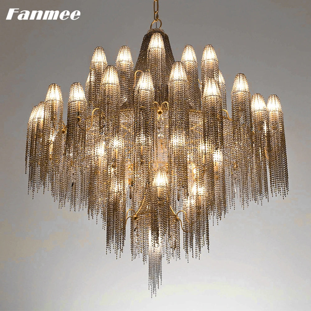 Aluminum Chain Retro Large Chandelier Lighting LED Vintage Luxury Tassel Indoor Light Fixture for Living Room Villa Hotel