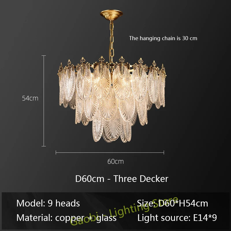American Copper Luxury LED Chandelier Lighting Dining Living Room Glass Hanging Lamp Postmodern Bedroom Villa Lobby Home Fixture