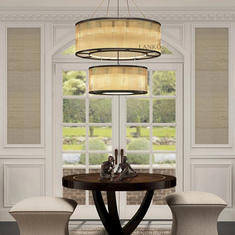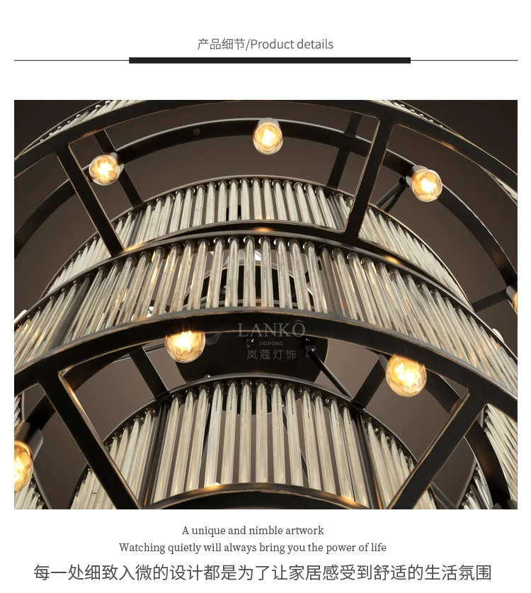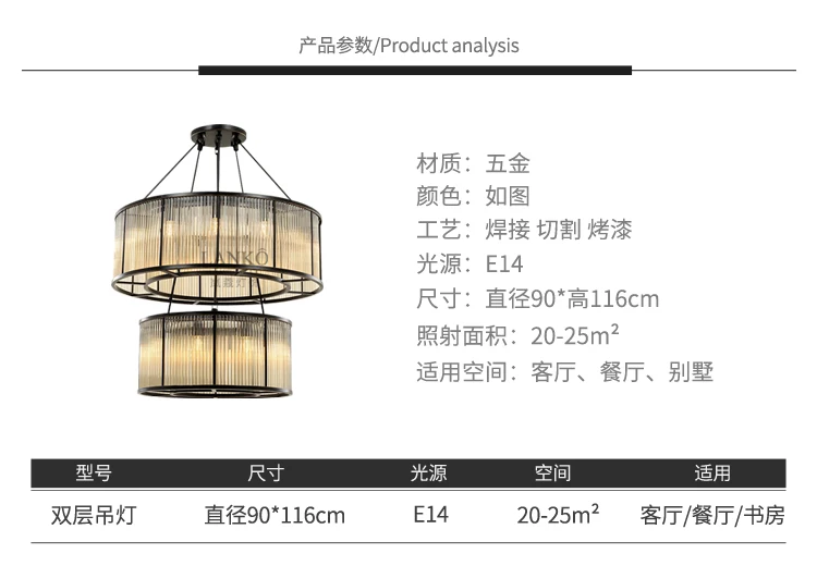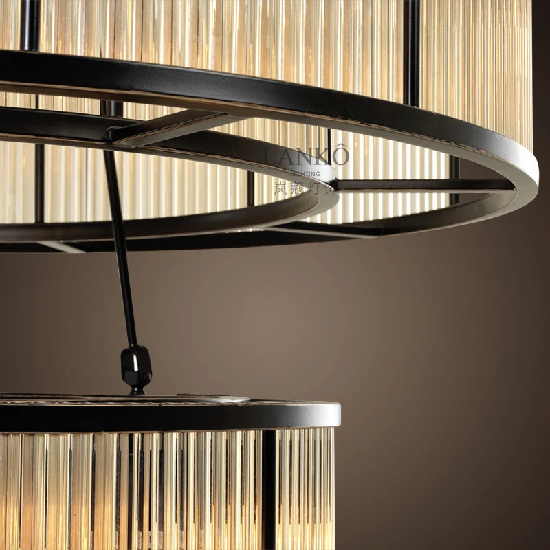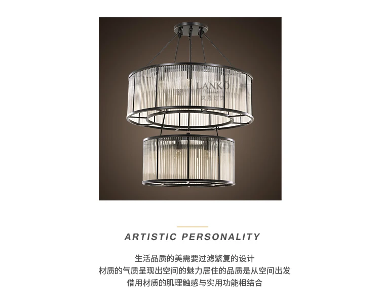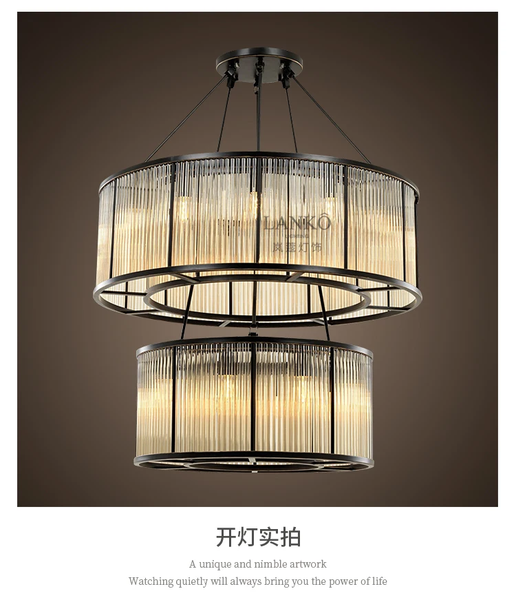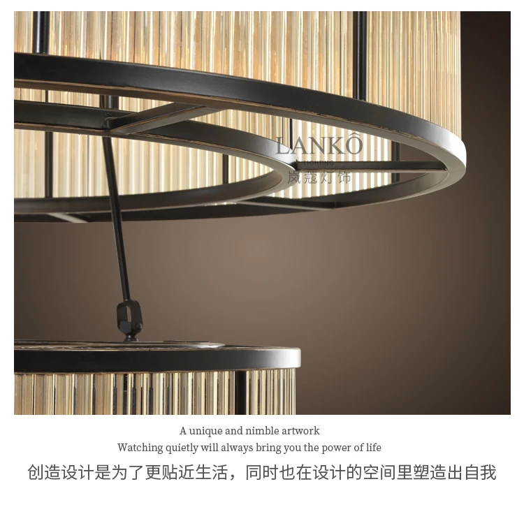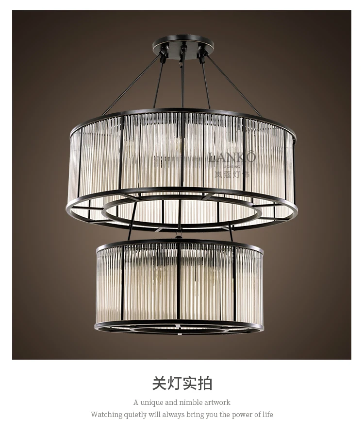 American simple retro double glass rod personality chandelier modern villa duplex building hotel club lighting