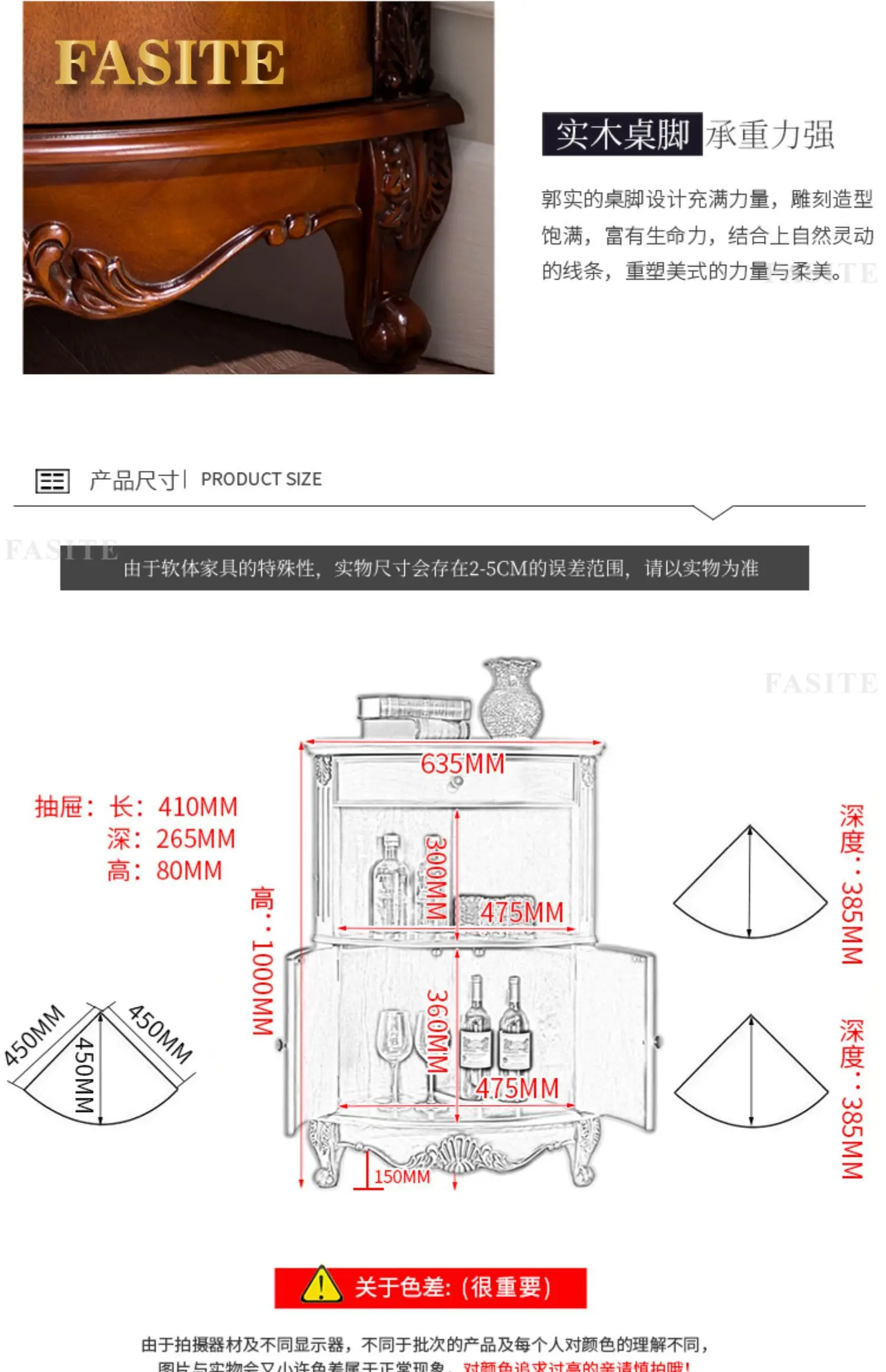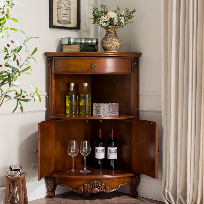 American style solid wood corner cabinet, fan shaped European style living room triangle cabinet retro corner cabinet decoration