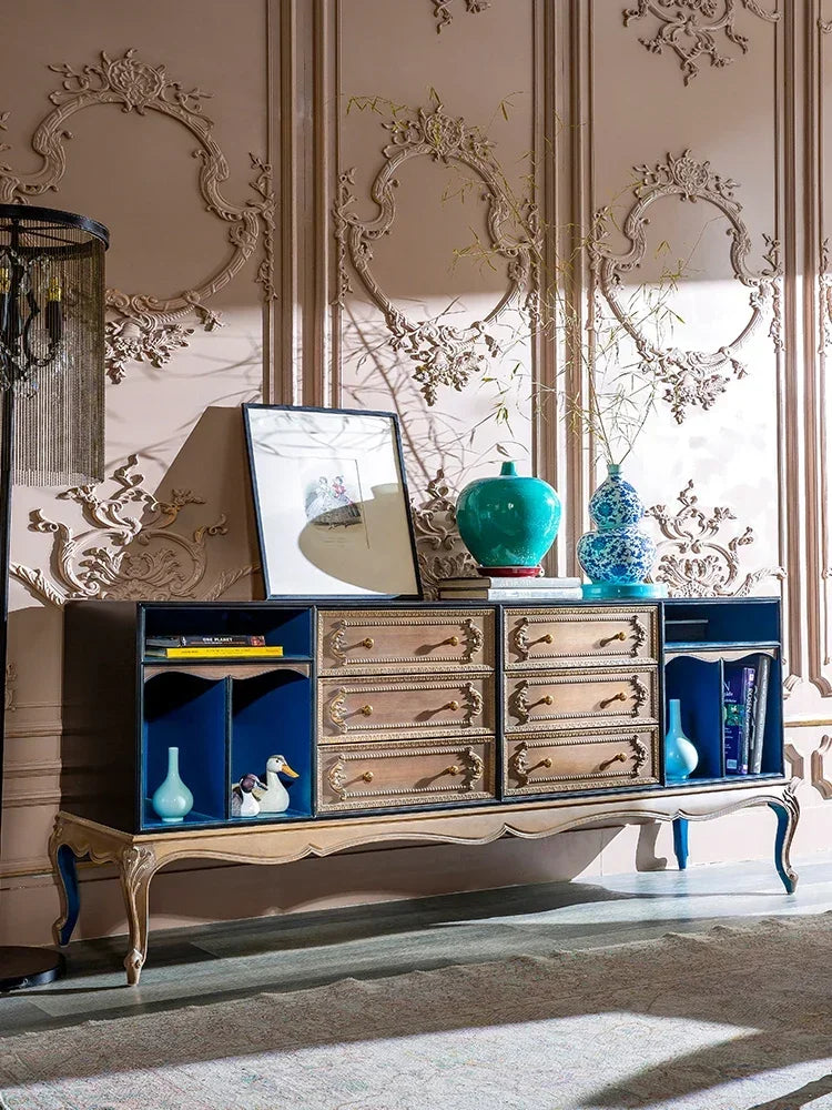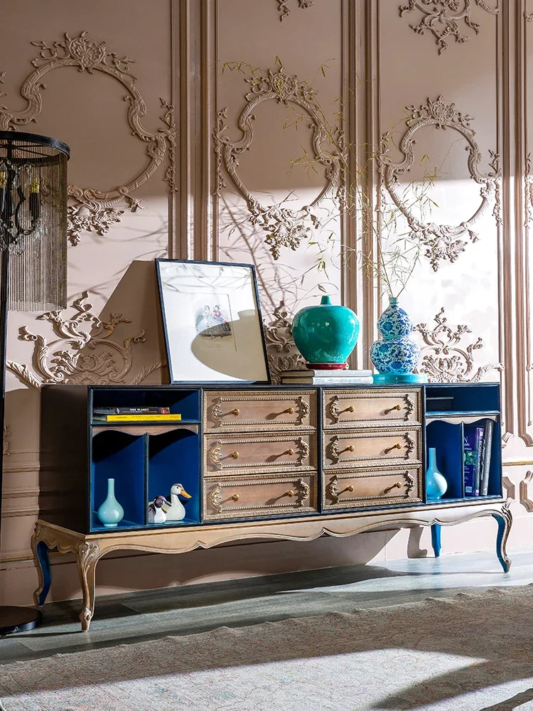 MMOOKA Antique Carved Storage Vintage Imported Solid Wood High-End Villa Furniture