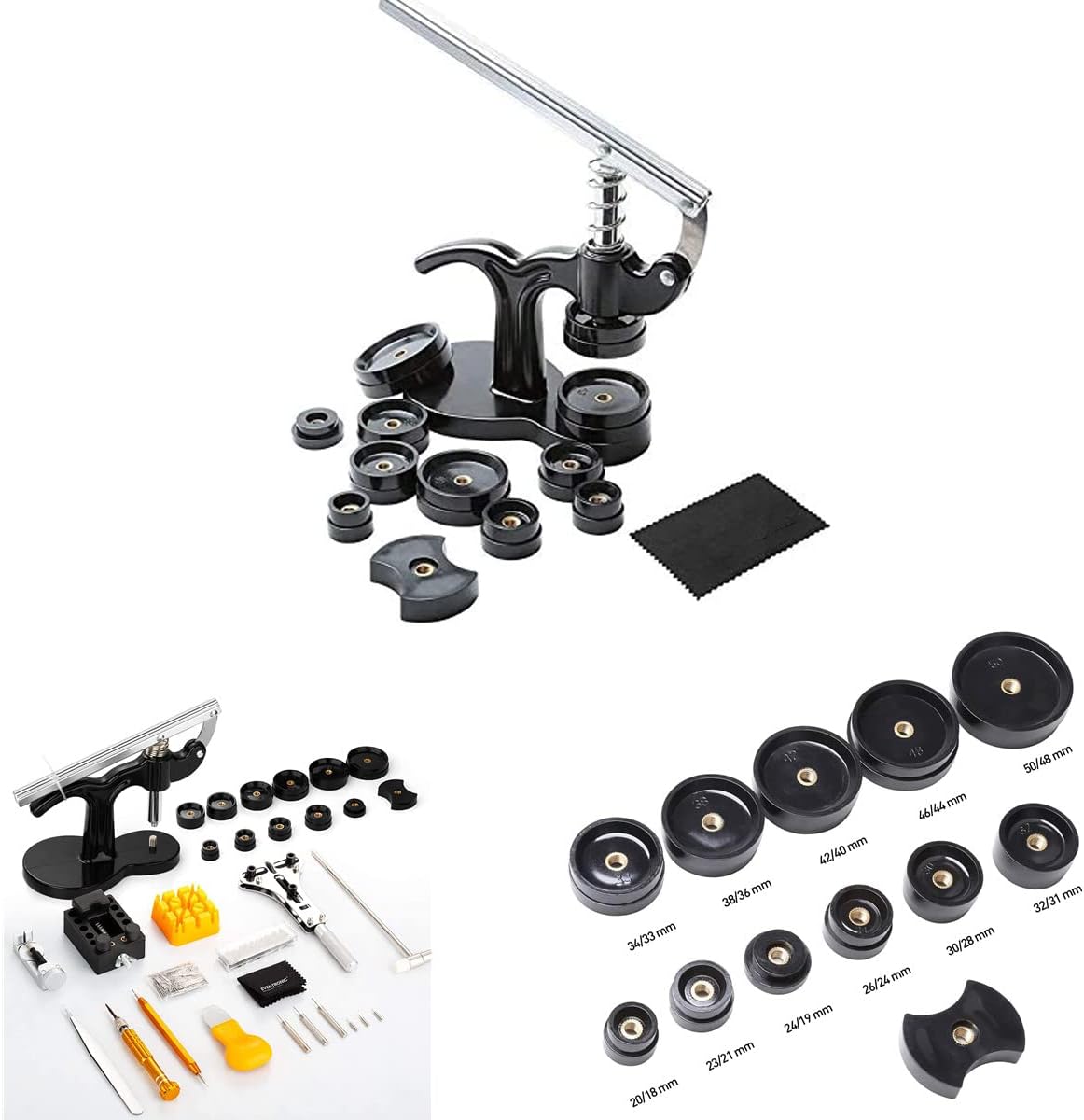 【VARIOUS DIES TO FIT YOUR WATCH】 - 12 dies double size to allow for 50/48mm 46/44mm 42/40mm 38/36mm 34/33mm 32/31mm 30/28mm 26/24mm 23/21mm 20/18mm.The various sizes make it easy to find the right ones.Pls see the video on YouTube before use it,no instructions in the package.