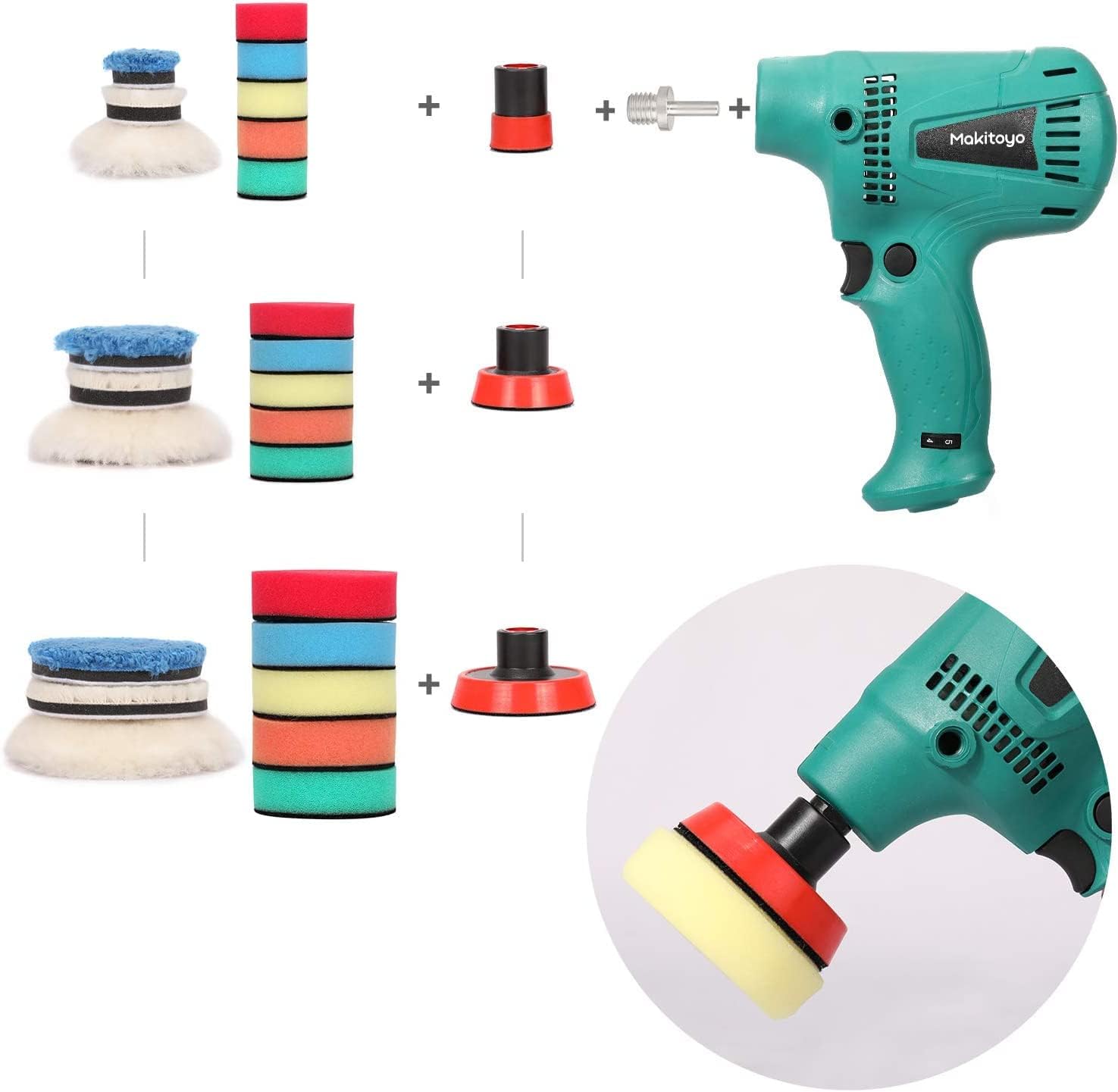 ANTNX 29 Piece Drill Buffing & Detail Polishing Pad Kit 1-inch,2-inch,3-inch with 5/8"-11 Thread Backing pad & Adapters for Car Sanding, Polishing, Waxing, Sealing Glaze