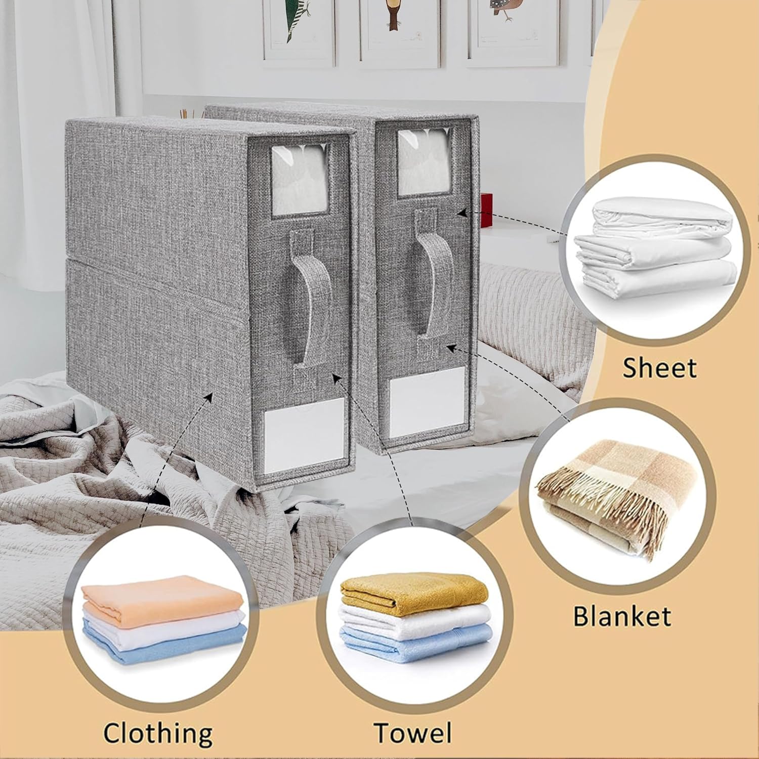 ANTNX Sheet set Storage Bag 2 pieces linen sheet cover Foldable storage box with handle for Blanket Bedding Set (grey)