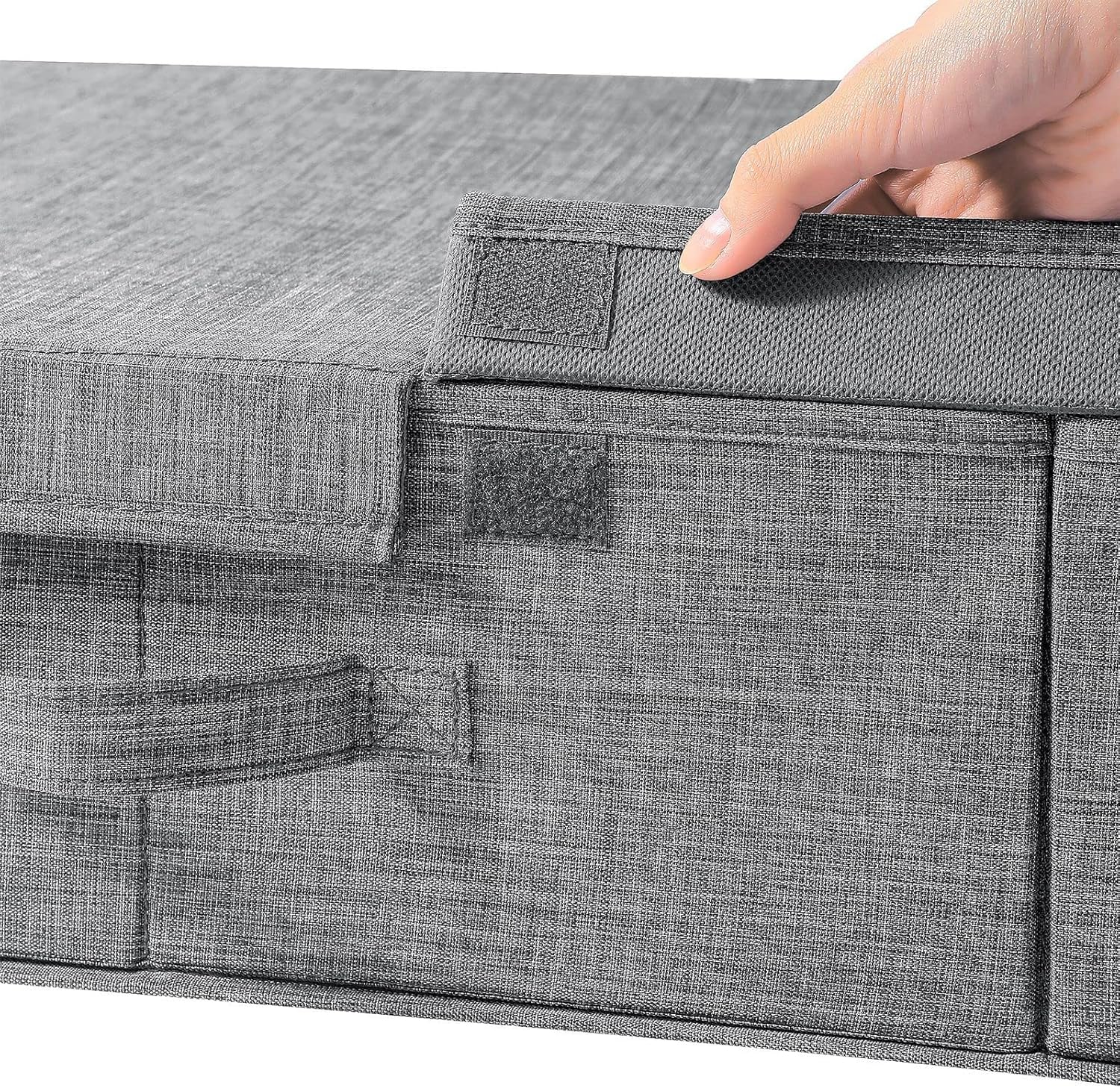 ANTNX Under bed storage box with lid 2-piece with handle with label Collapsible stackable storage box for organizing clothes, shoes, blankets, pillows, sheets (gray)