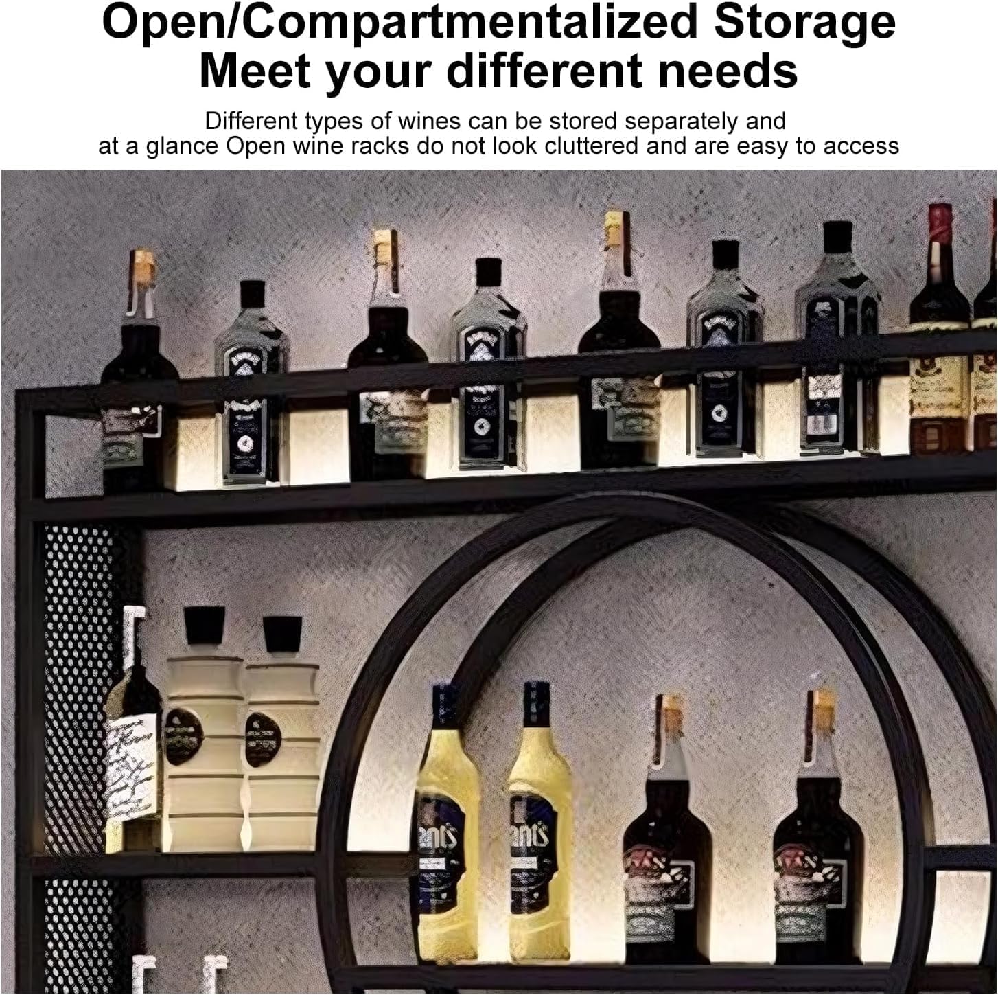 Wall Mounted Metal Wine Rack,Wine Bottle Shelf, 3-Tier Metal Bar Shelf with Glass Holder & Rust-Proof Coating,Multifunctional Display for Home/Bar/Kitchen