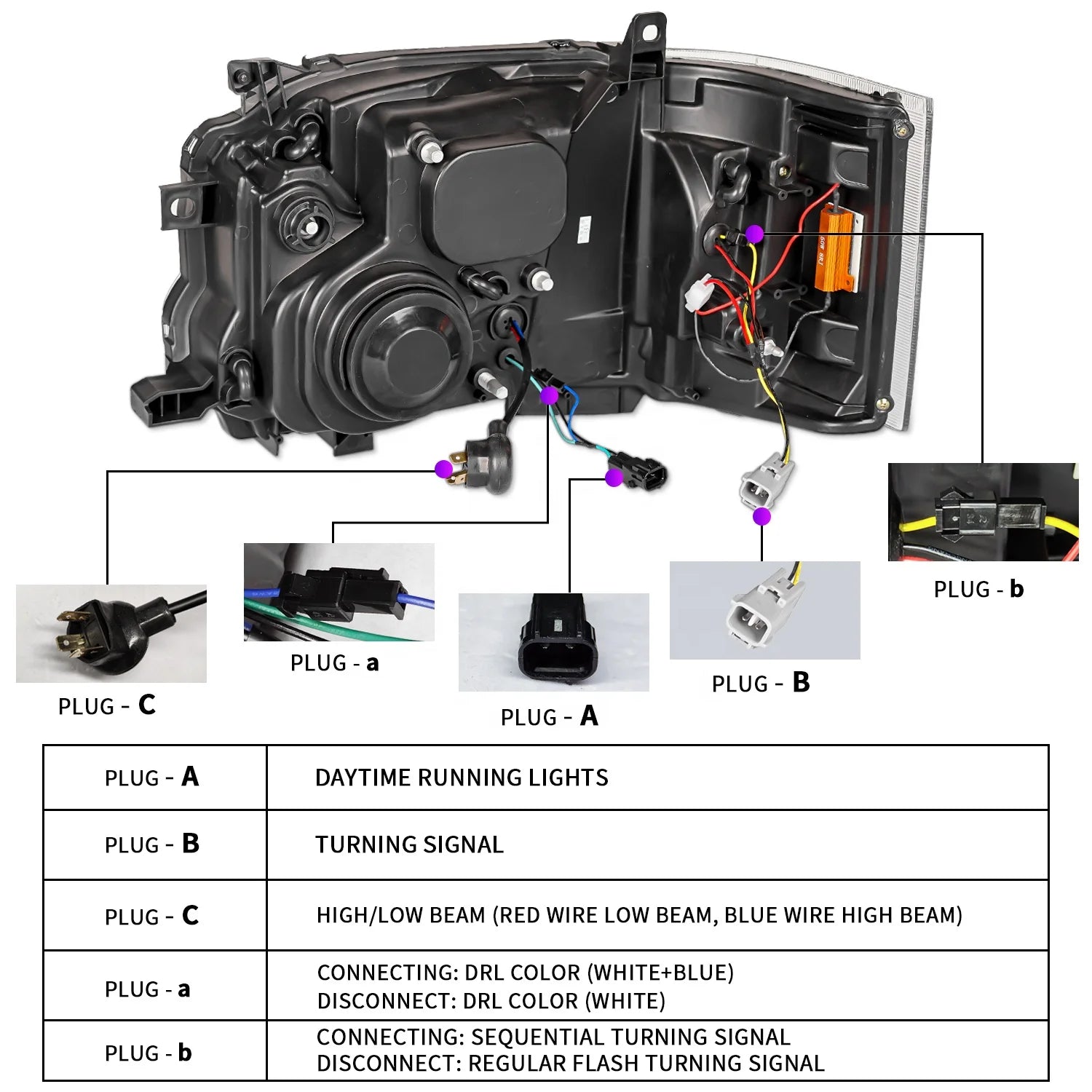 3.The package includes & plug and play: with a pair of headlights (right + left);Instructions for installation.Plug and play,