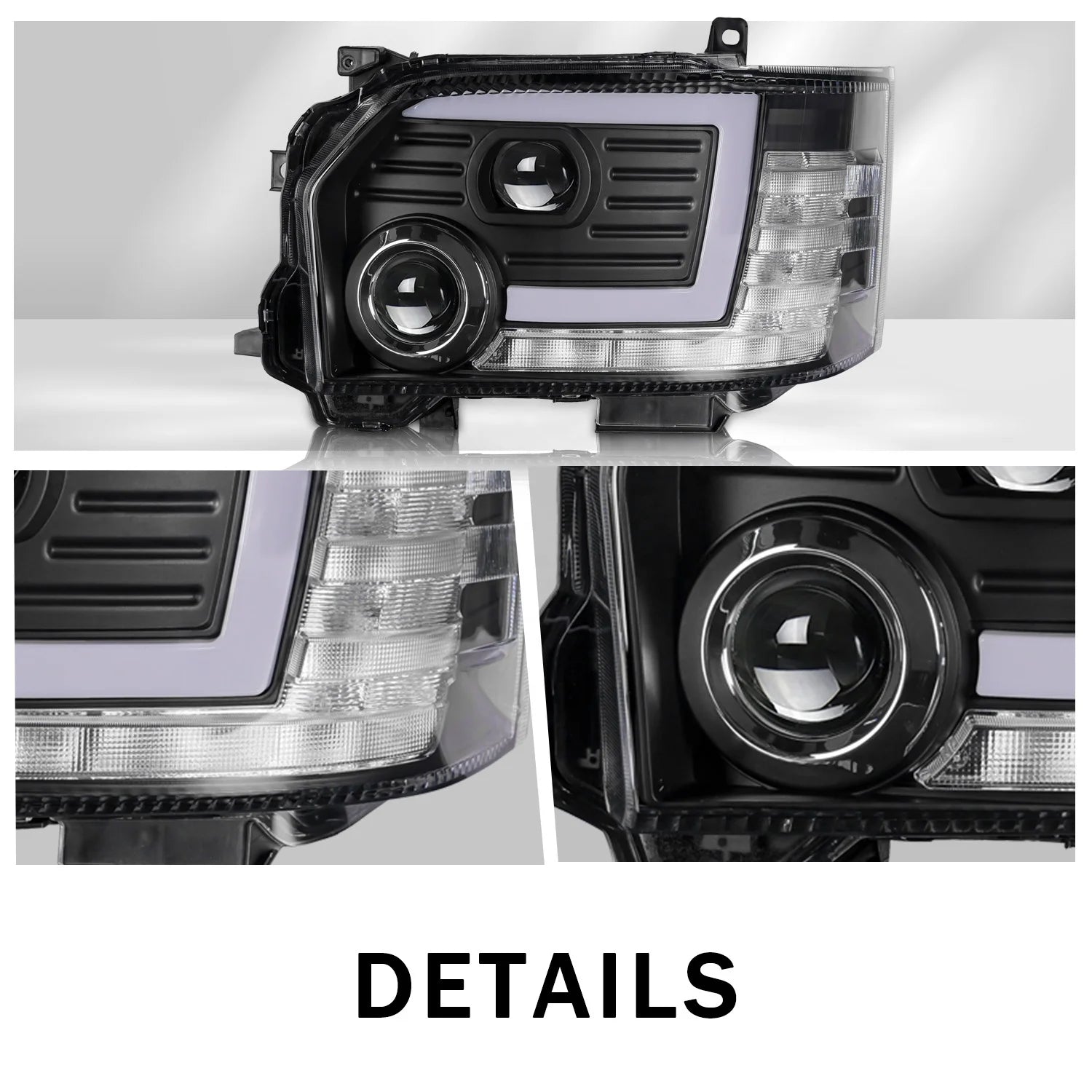 1.DRL + high beam light + low beam light + sequential turning signal, waterproof IP67, anti -shock and dust