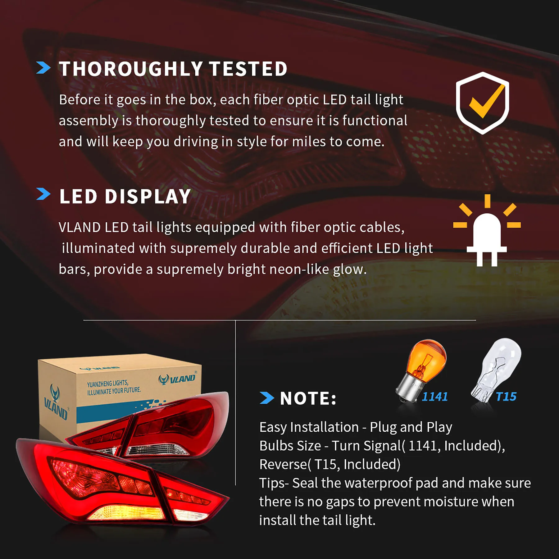 ARCHAIC manufacturer for elantra 5th generation car LED sequential turn signal backlight tail lamp 2011-2016 for Hyundai Elantra