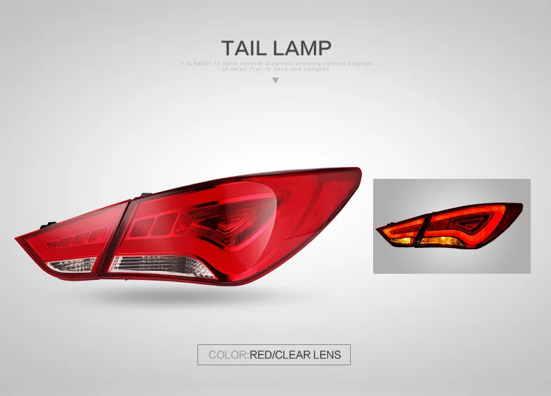 ARCHAIC manufacturer for sonata 6th generation car LED 2010 2011 2012 2013 2014 with LED DRL BRAKE for Hyundai sonata