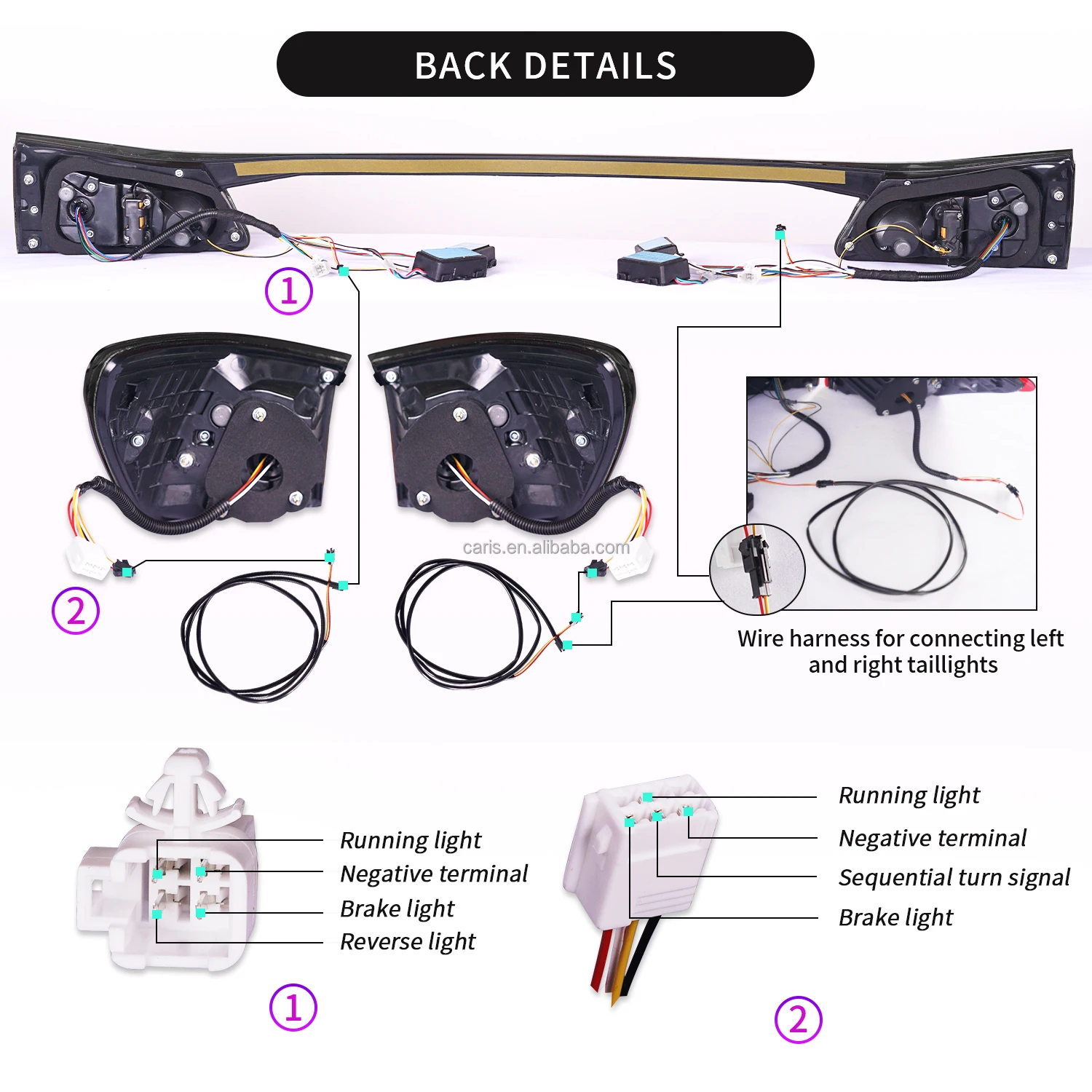1. Function: Running Light+Sequential Turn Signal+Brake Light+Reverse Light,