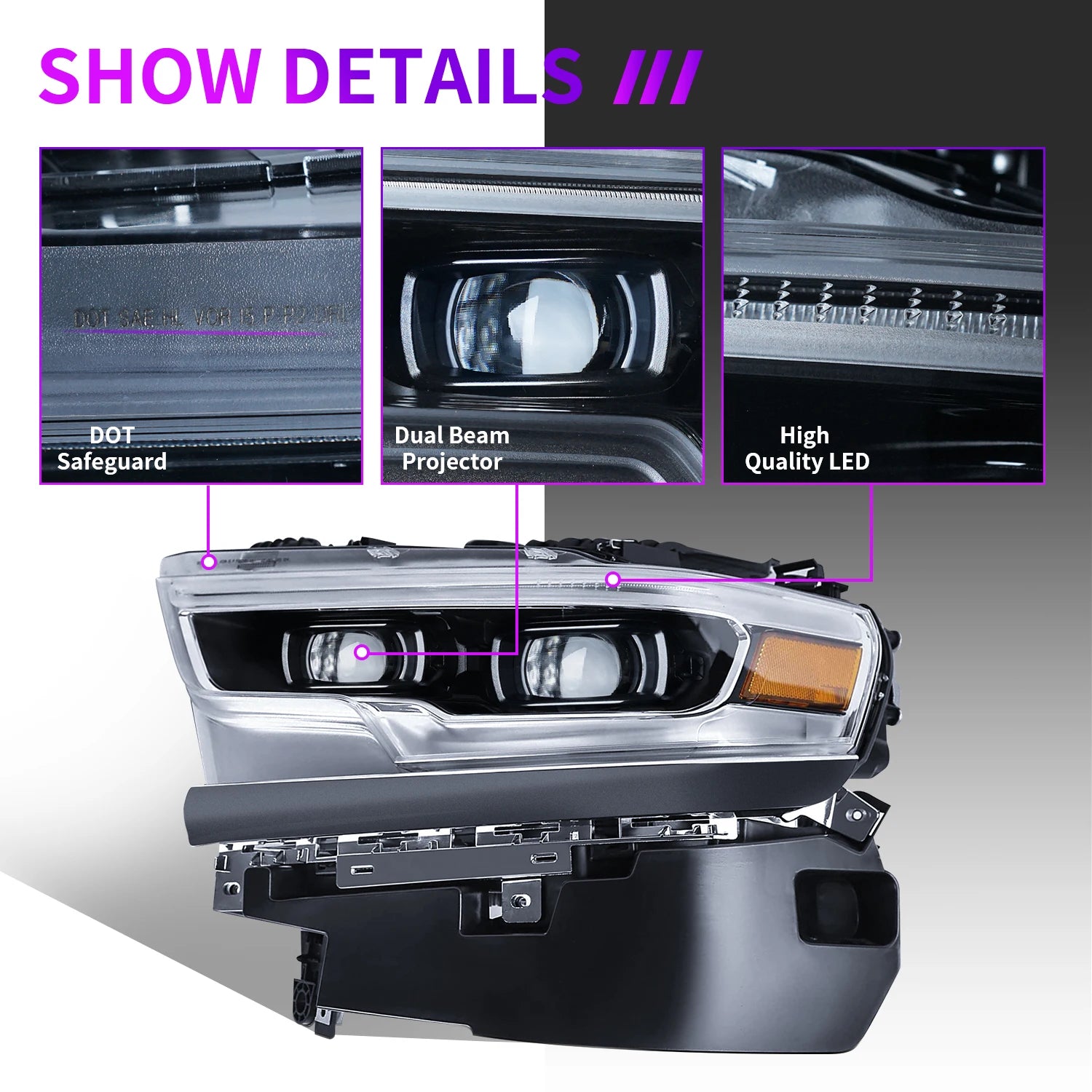 Archaic RAM1500 OE BIG HORN Head Lamp Full LED Dual Beam White DRL 2019-2022 For Dodge Ram 1500 Headlights Left Driver Side