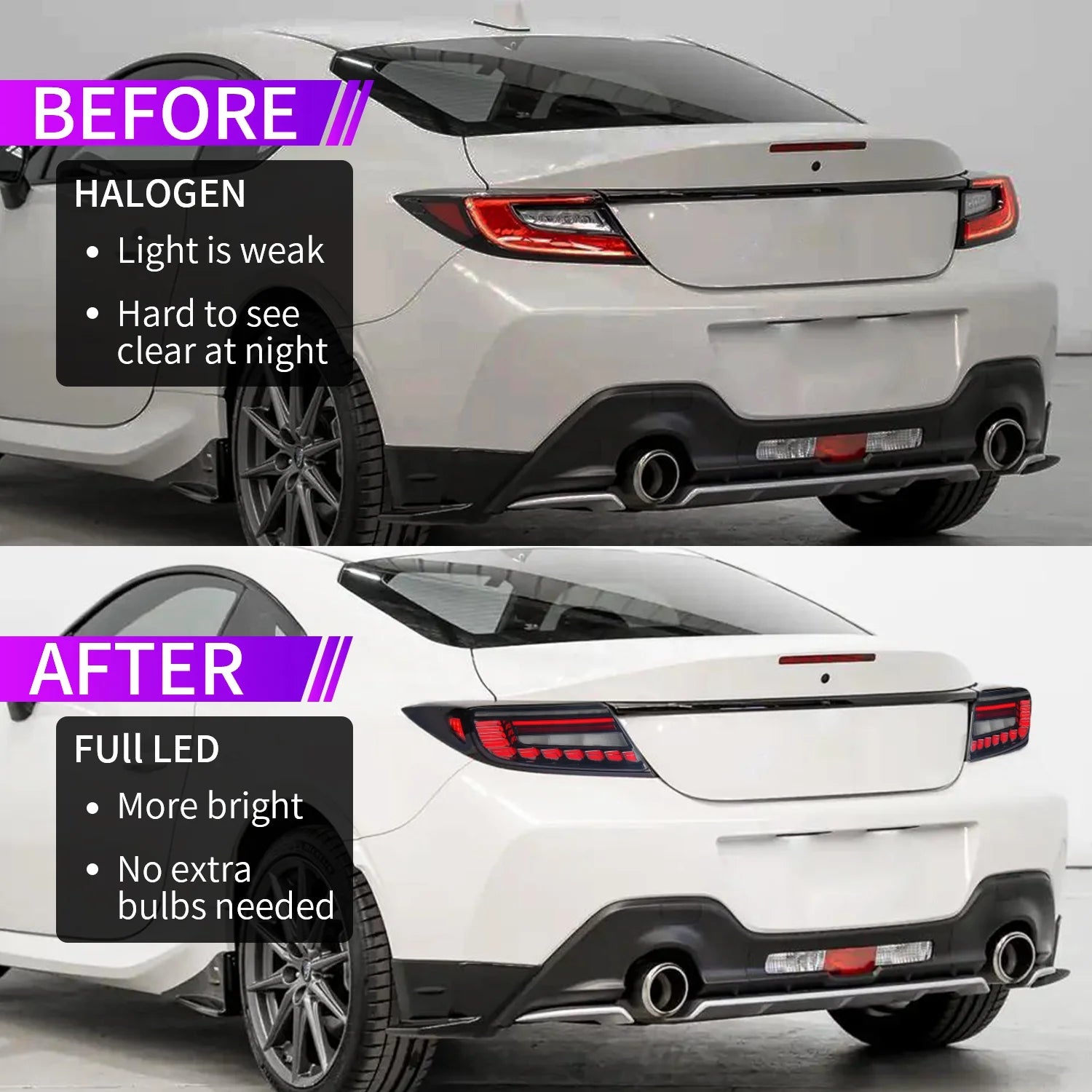 3.Package:Comes with a pair of taillights(right side + left side).More than 80,000 hour lifetime, waterproof IP67, anti-fog,shockproof and dust-proof.