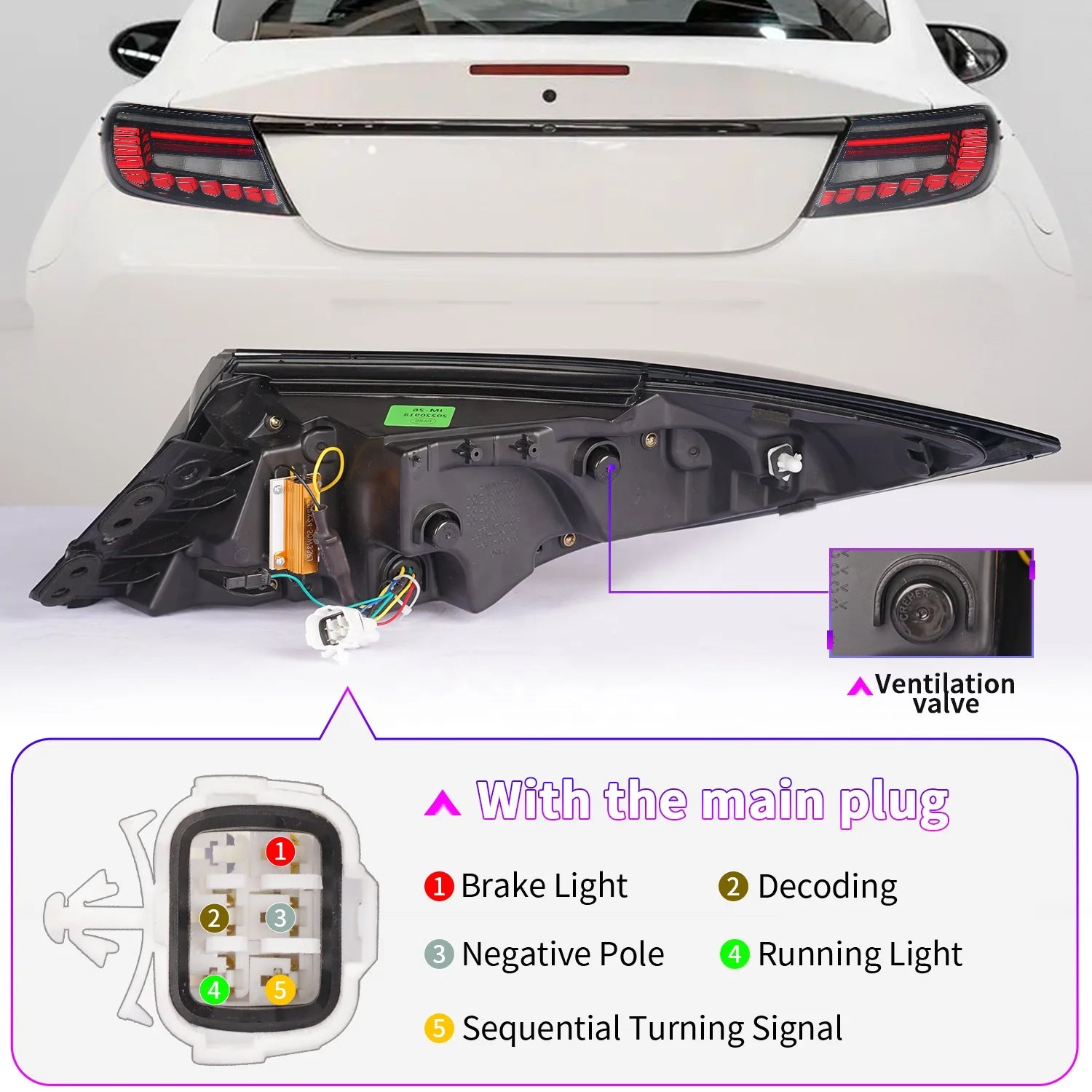 1.Function: Running Light+Sequential Turn Signal+Brake Light+Reverse Light