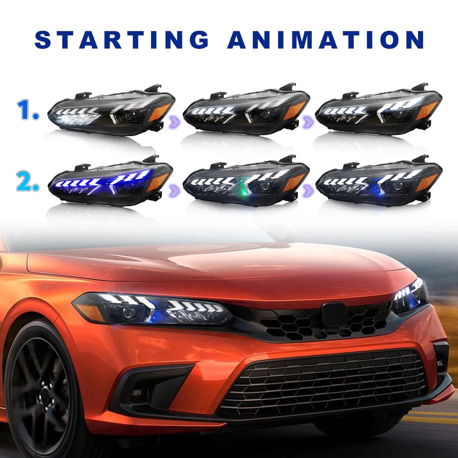 Archaic Full LED Headlights for 11th Gen Honda Civic 2021 2022 2023 Headlight with Starting Animation Sequential Turning Signal PLUG & PLAY