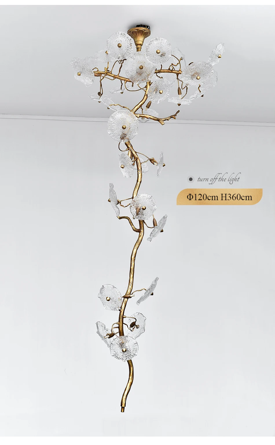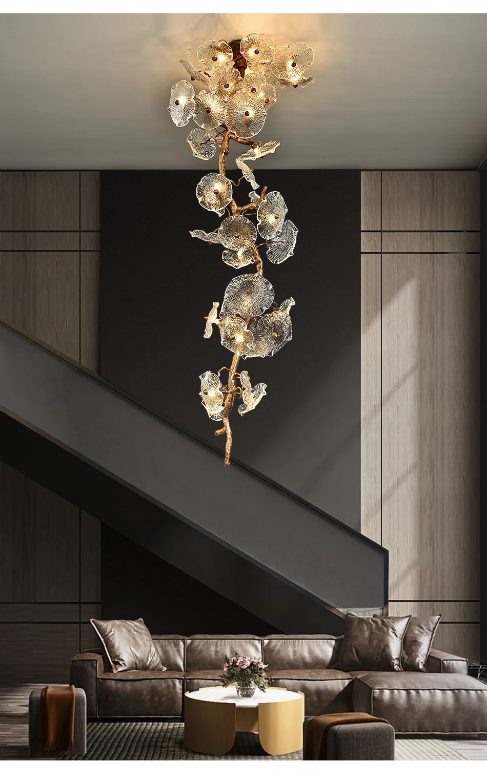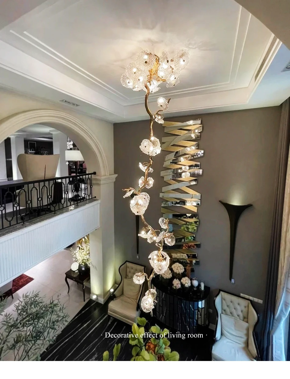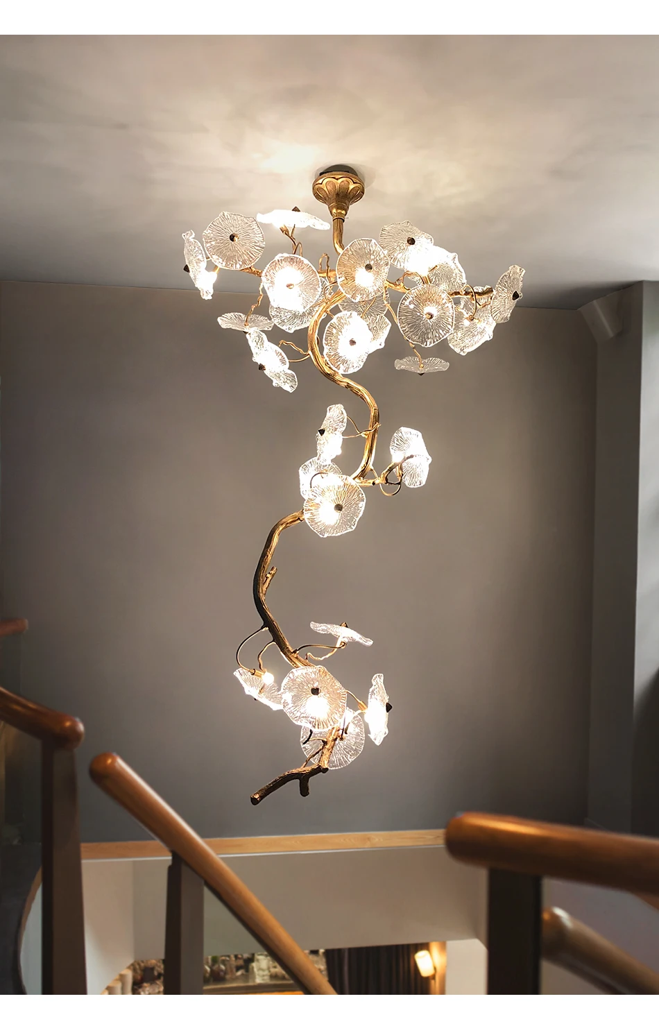 ART DECO Staircase Chandelier Long Led Copper Light for Large Hallway Lobby Loft Villa Glass Lamp Stair Home Decorative