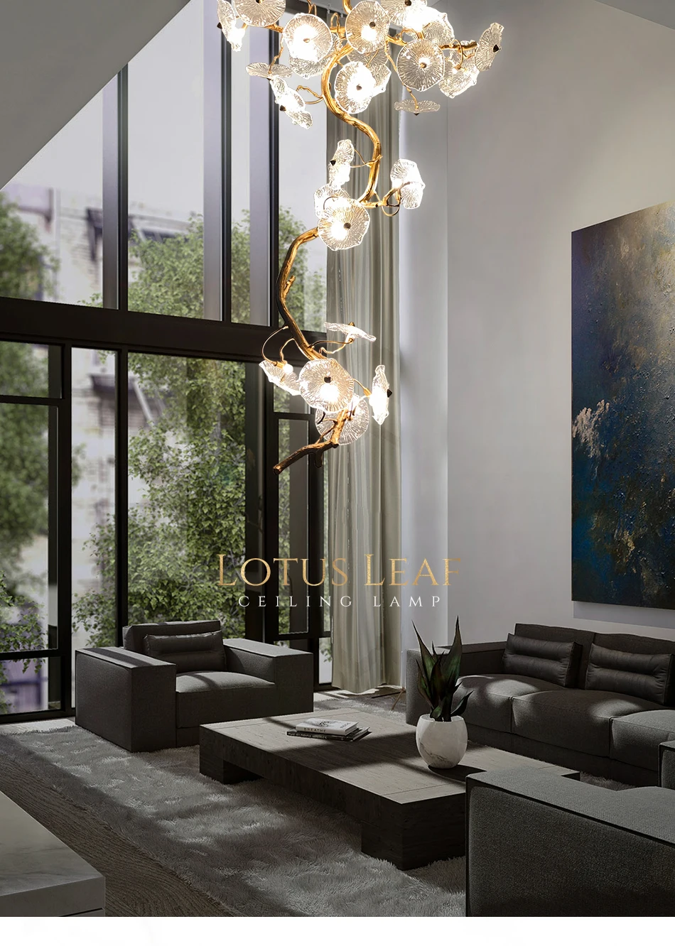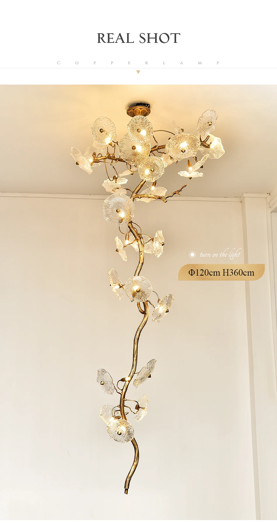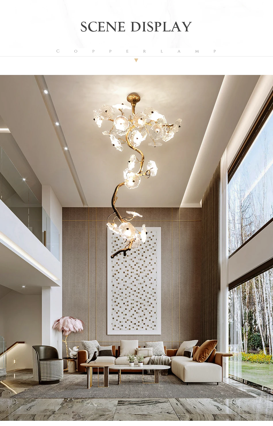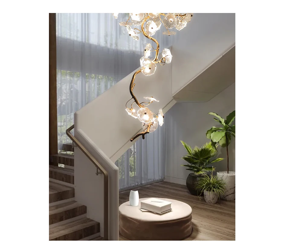 ART DECO Staircase Chandelier Long Led Copper Light for Large Hallway Lobby Loft Villa Glass Lamp Stair Home Decorative