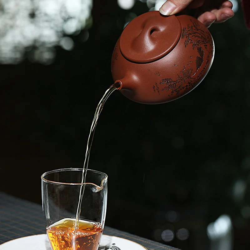 Authentic Yixing Purple Clay Pot, Fully Handmade Kung Fu Tea Original Mine Bottom Trough, Pure Handcarved Landscape, Boat,