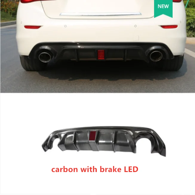 Automotive Parts Rear Bumper Lip For INFINITI Q50 2014-2017 Upgrade Carbon Fiber Rear Diffuser With LED