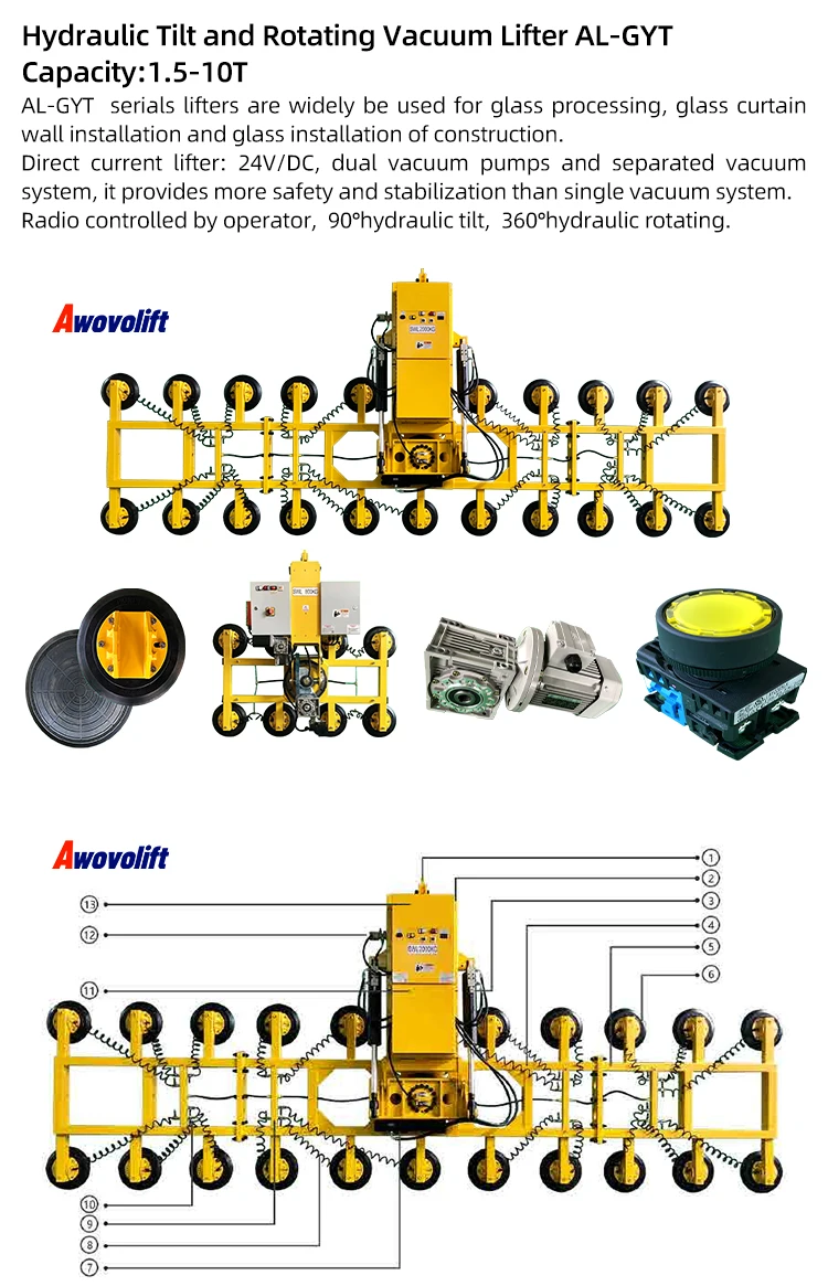 Awovolift Glass Vacuum Suction Lifting Equipment Hydraulic Turnover Rotary Vacuum Suction Crane Making More Convenient To Use