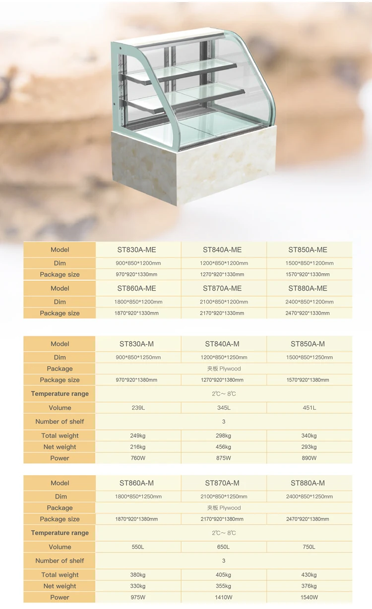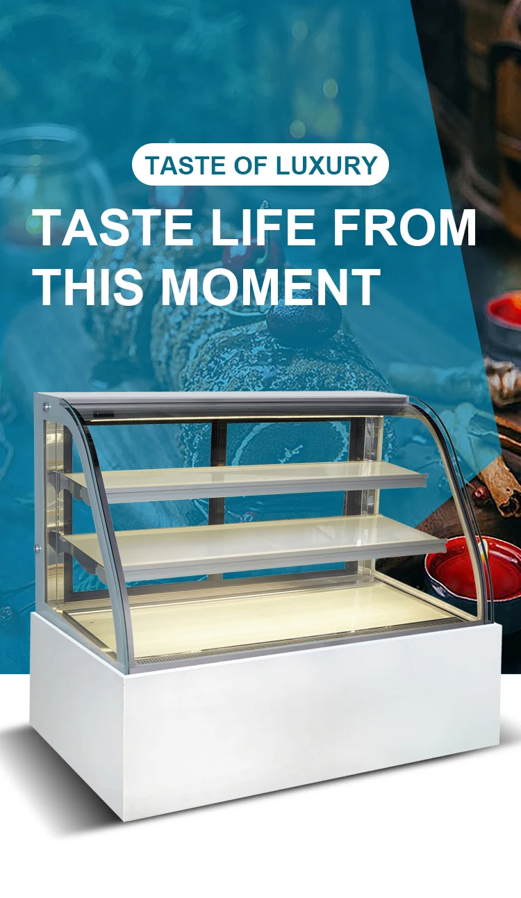 bakery refrigerated cabinet curved glass display stand up refrigerator cake fridge showcase cooler for dessert pastry
