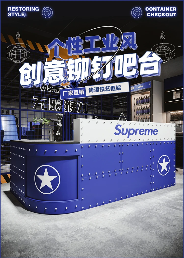 Bar cashier commercial store creative clothing store hair salon gym wrought iron industrial wind reception desk