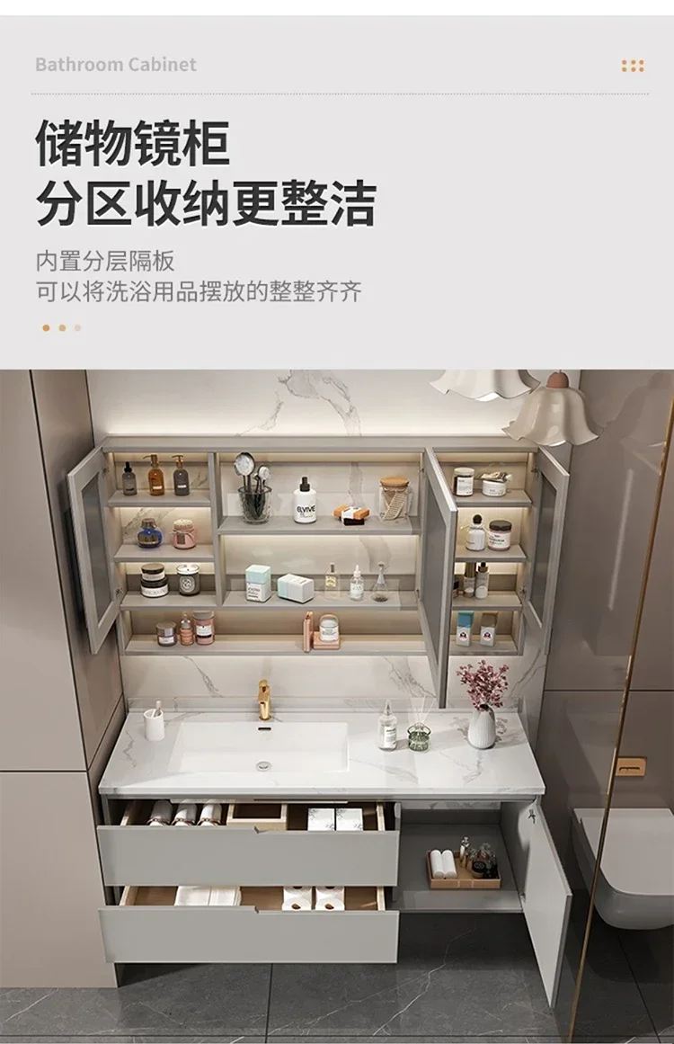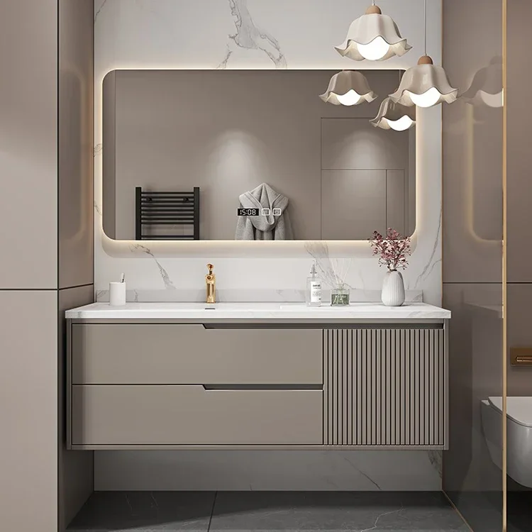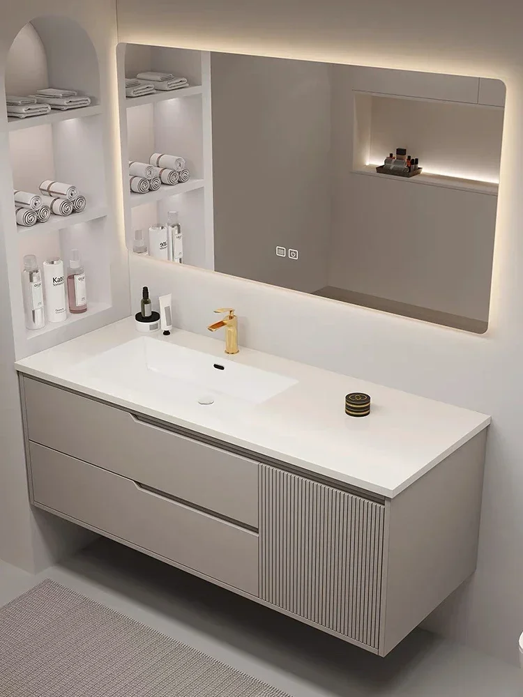 MMOOKA Basin With Wooden Cabine Bathroom Cabinet Vanity With Sink Furniture Combination Oak Smart Mirror Lacquered Seamless Integrated