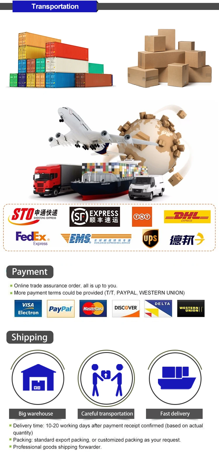 TT.paypal.Western Union.Trade Assurance