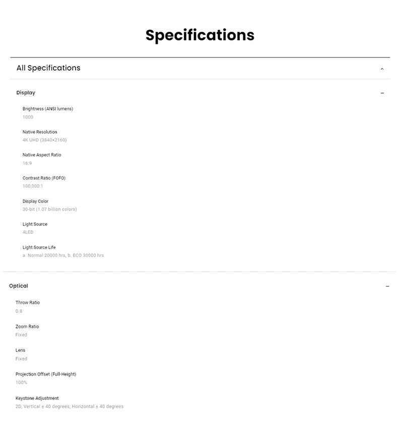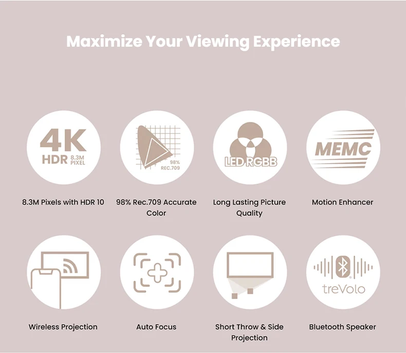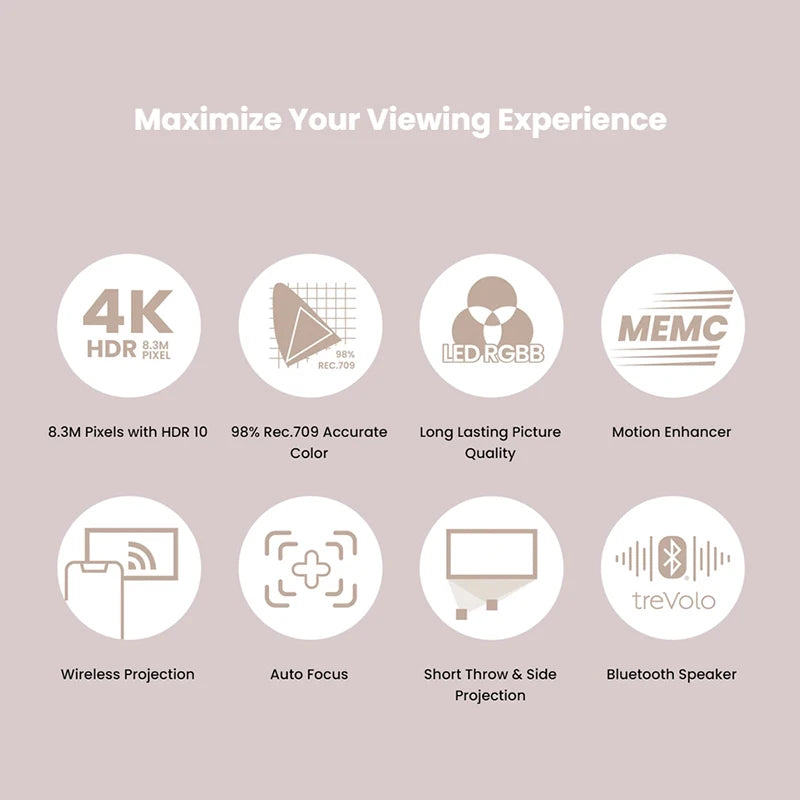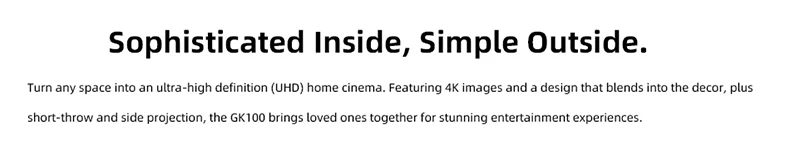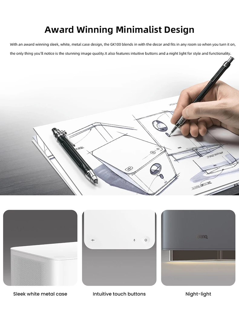 BENQ GK100 4K Short Throw Projector 3840×2160 Video Beamer LED DLP MEMC Rec.709 Home Theater