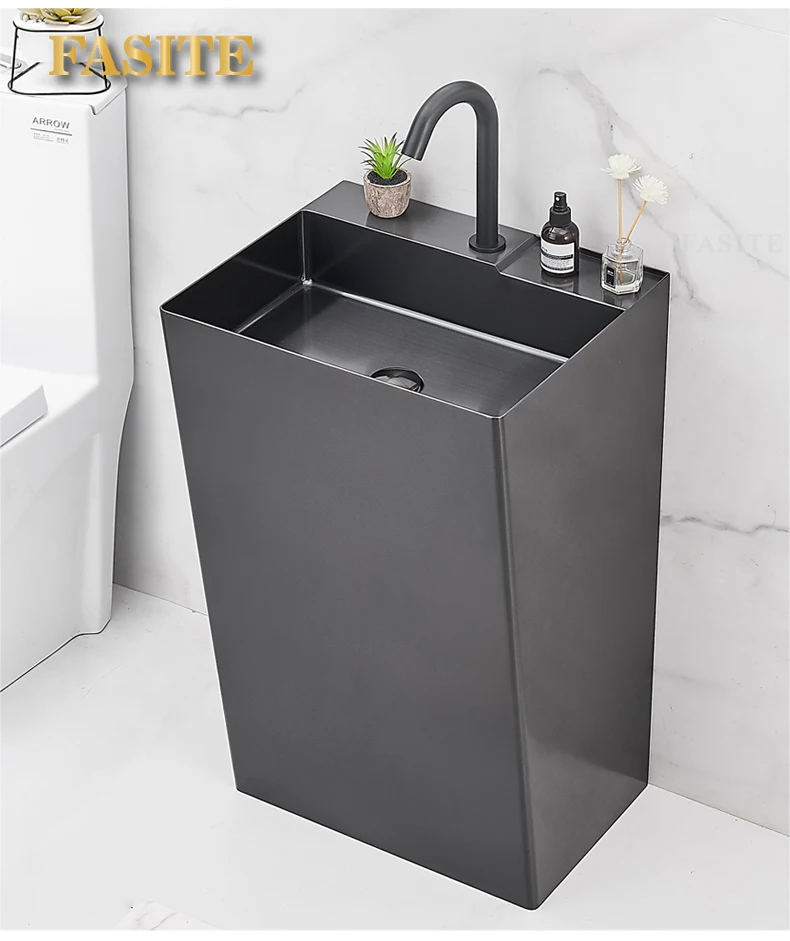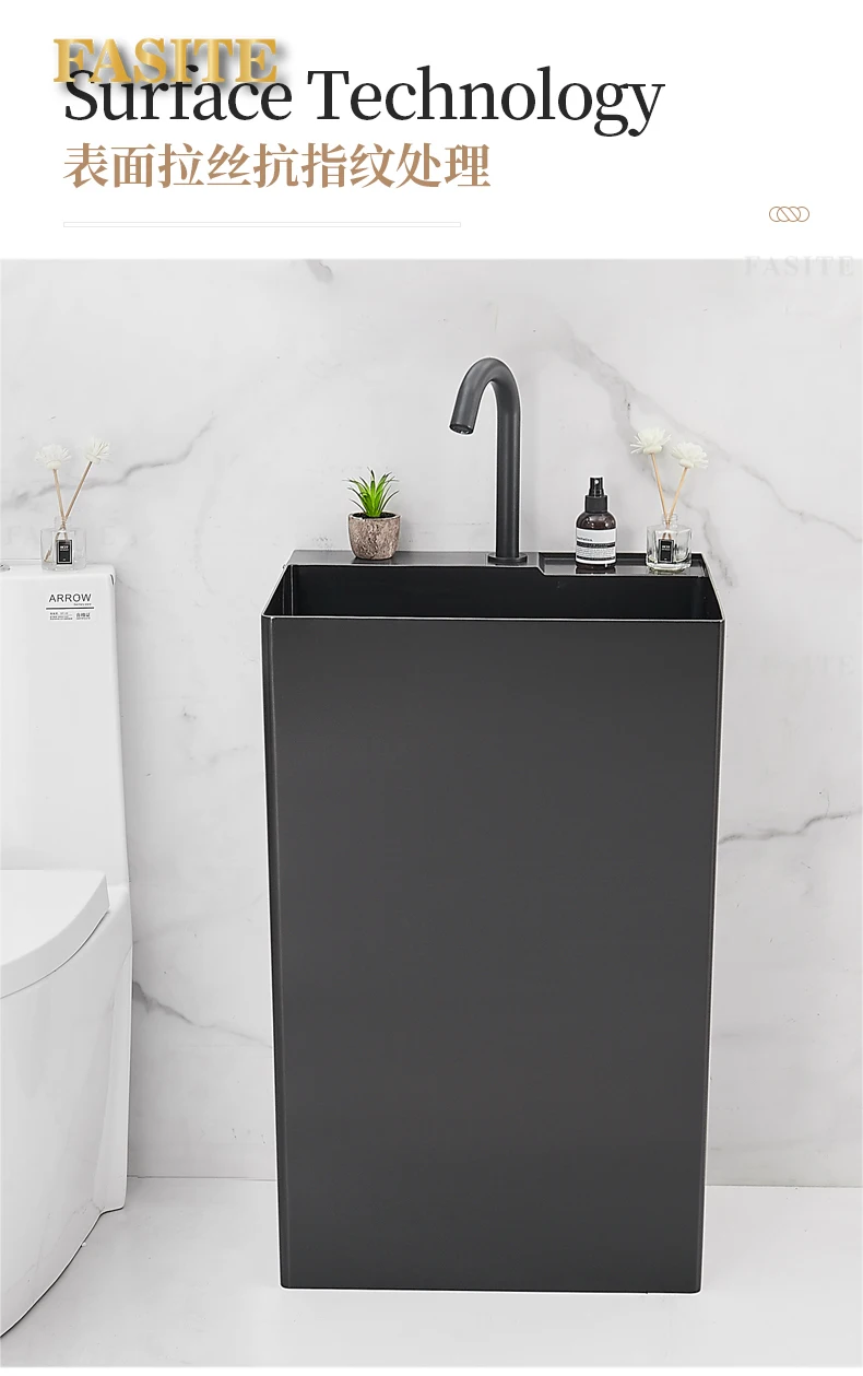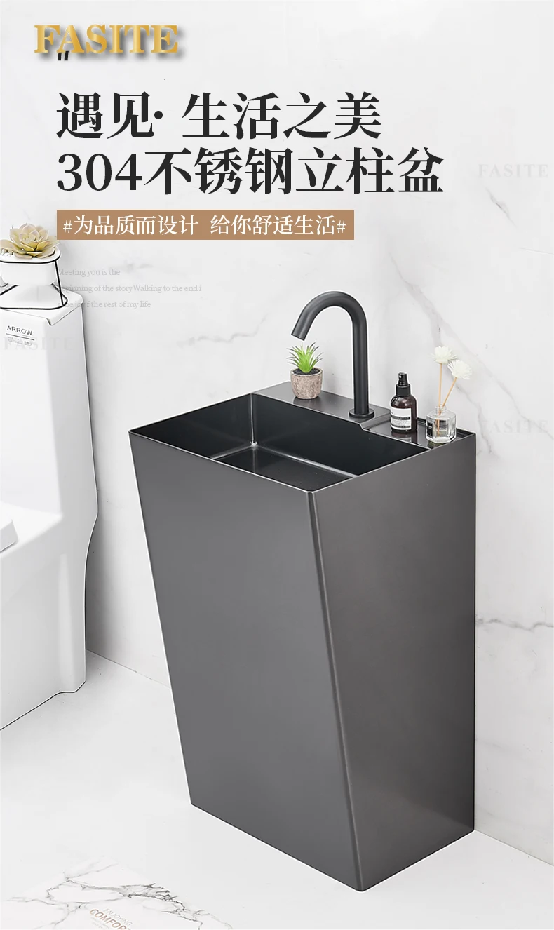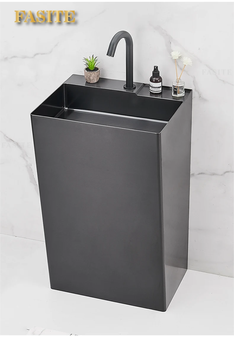 Black 304 stainless steel wash basin Hotel homestay floor-to-ceiling column basin wash basin