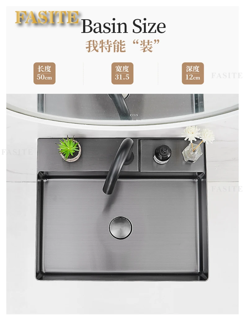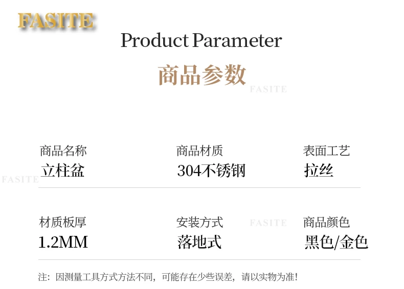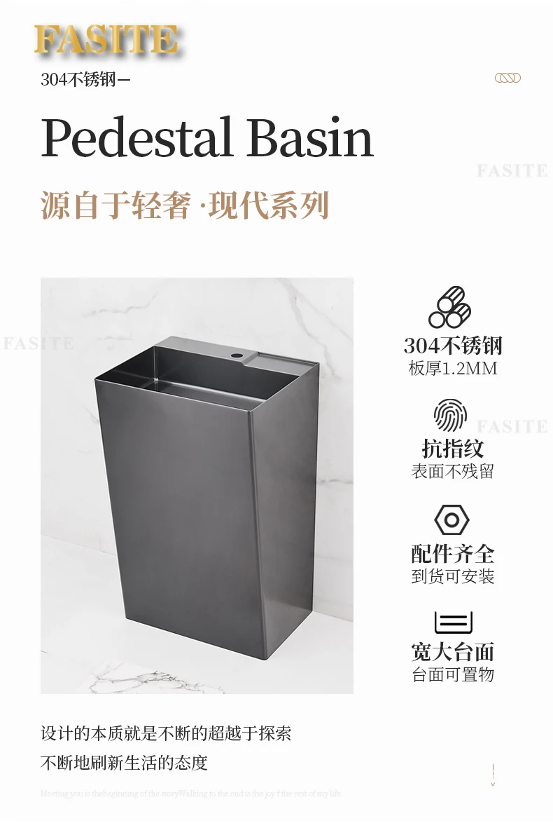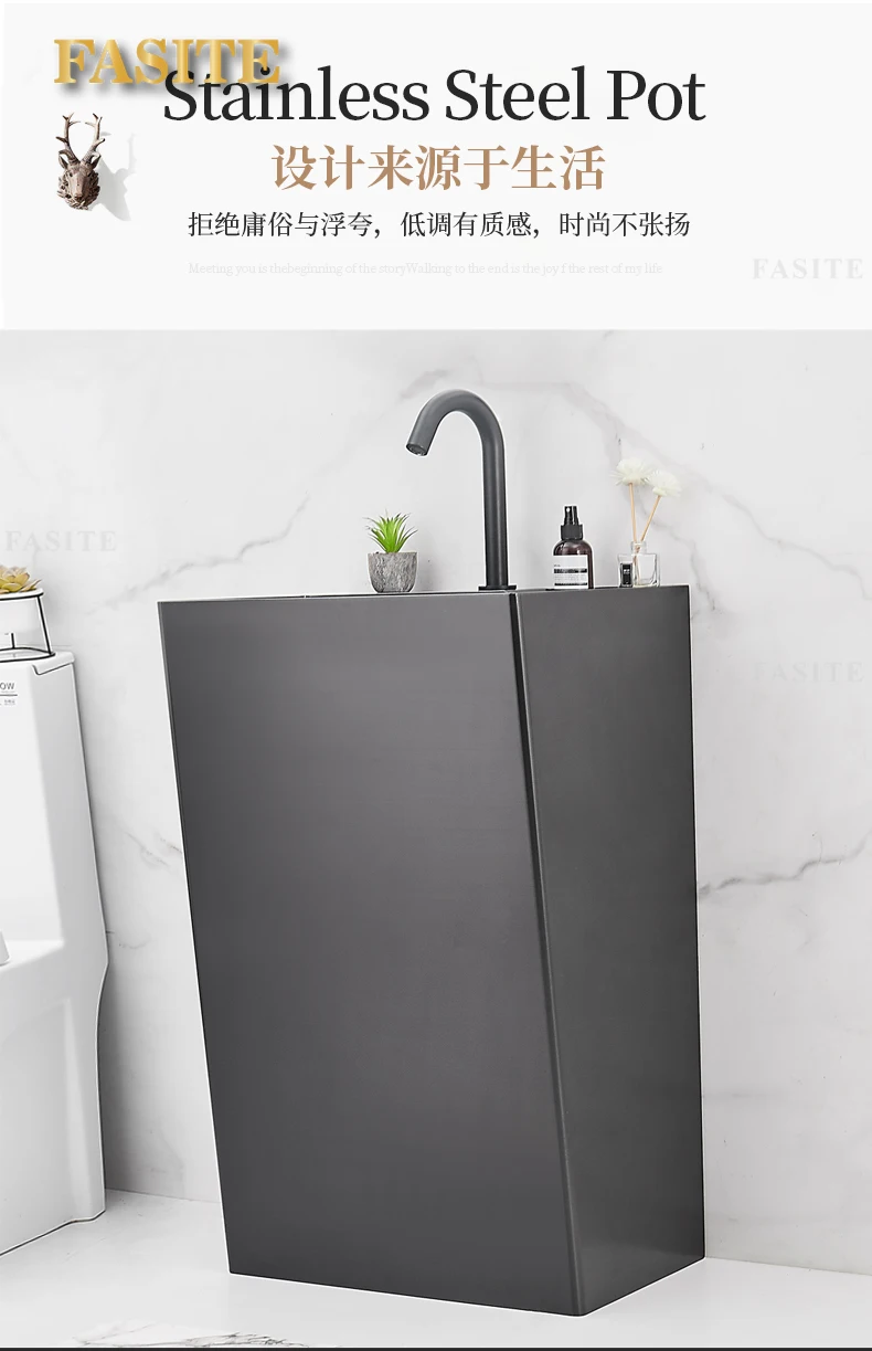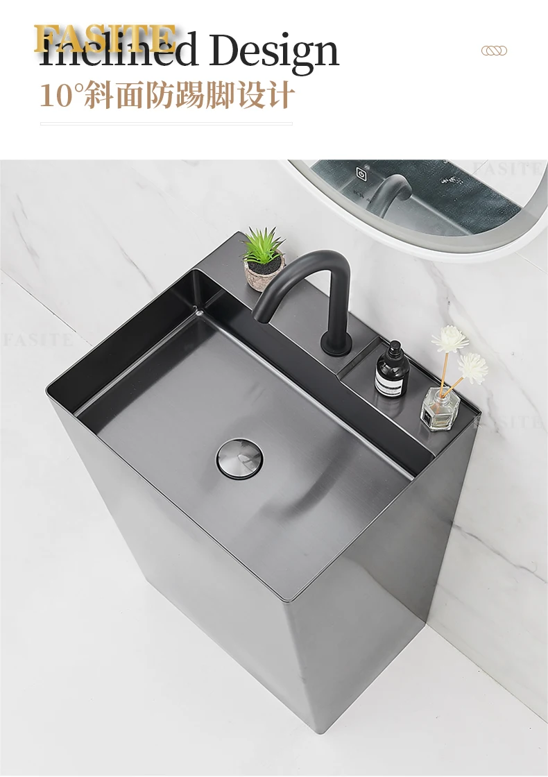 Black 304 stainless steel wash basin Hotel homestay floor-to-ceiling column basin wash basin