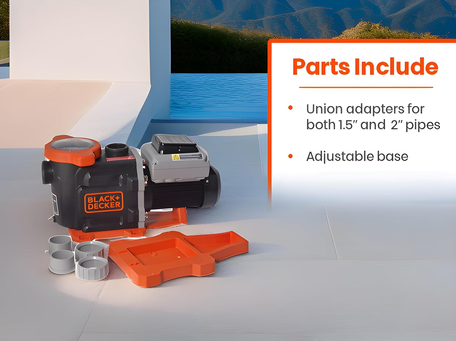 Energy Star Certified and with an included 5-year warranty, the Black & Decker 1.5 horsepower variable-speed pool pump outperforms all other pumps on the market—and pays itself off with up to 80% of energy costs saved in all phases of operation. This truly versatile unit allows slower filtration for a more quiet, consistent, and thorough job—all while saving big. Includes common-sense controls to accommodate all heaters, cleaners, salt systems, and even waterfalls. Permanent magnet technology and an enclosed design ensures this pump runs cool, stays dry, and is built to last. With guaranteed service, rebate eligibility, and craftsmanship from one of the most trusted manufacturers in the world, you can forever forgo the stress and enjoy your pool for what it's supposed to be: safe, sparkling, and fun.
