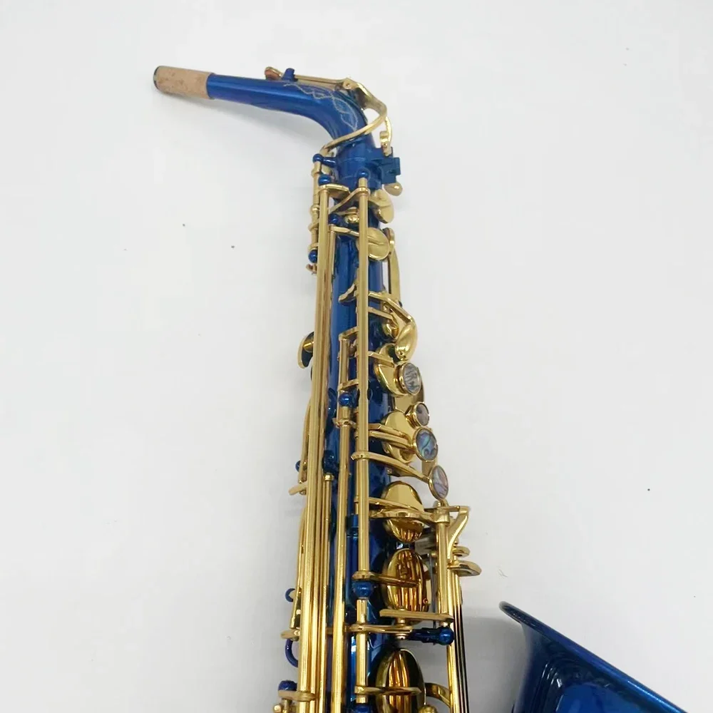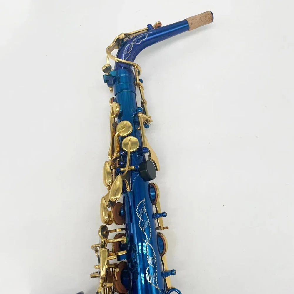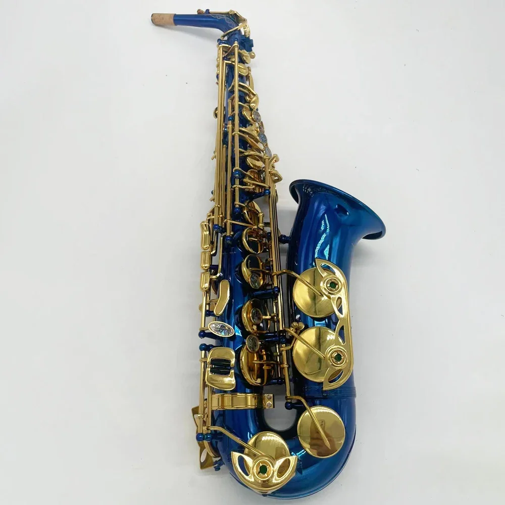Blue gold key professional Alto saxophone E tone down depth gold-plated engraving professional voice jazz instrument alto sax