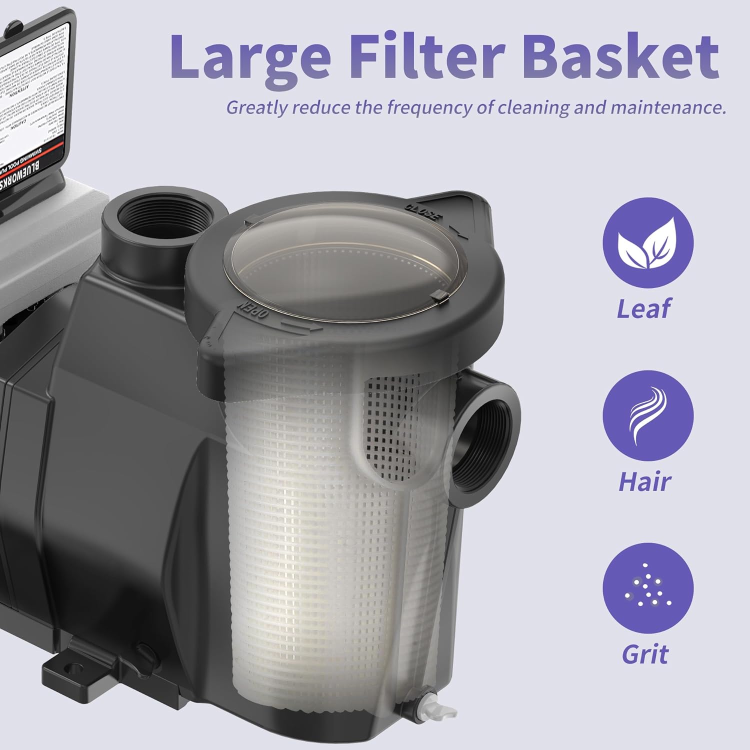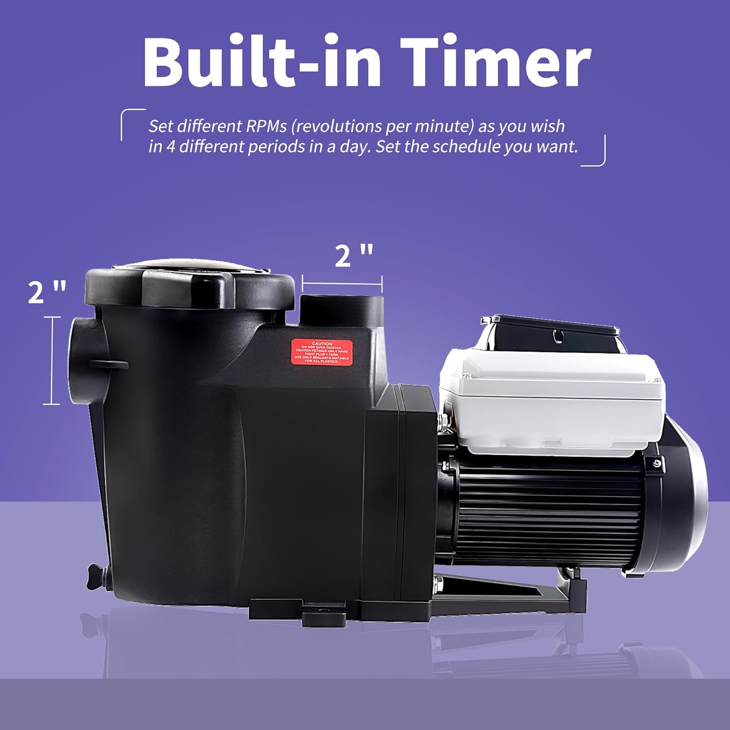 BLUE WORKS 1.5HP Variable Speed Pool Pump, Inground Swimming Pool Pump, 230V, 2 Years Warranty, BLPVS2015P