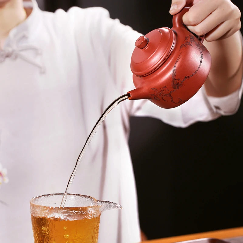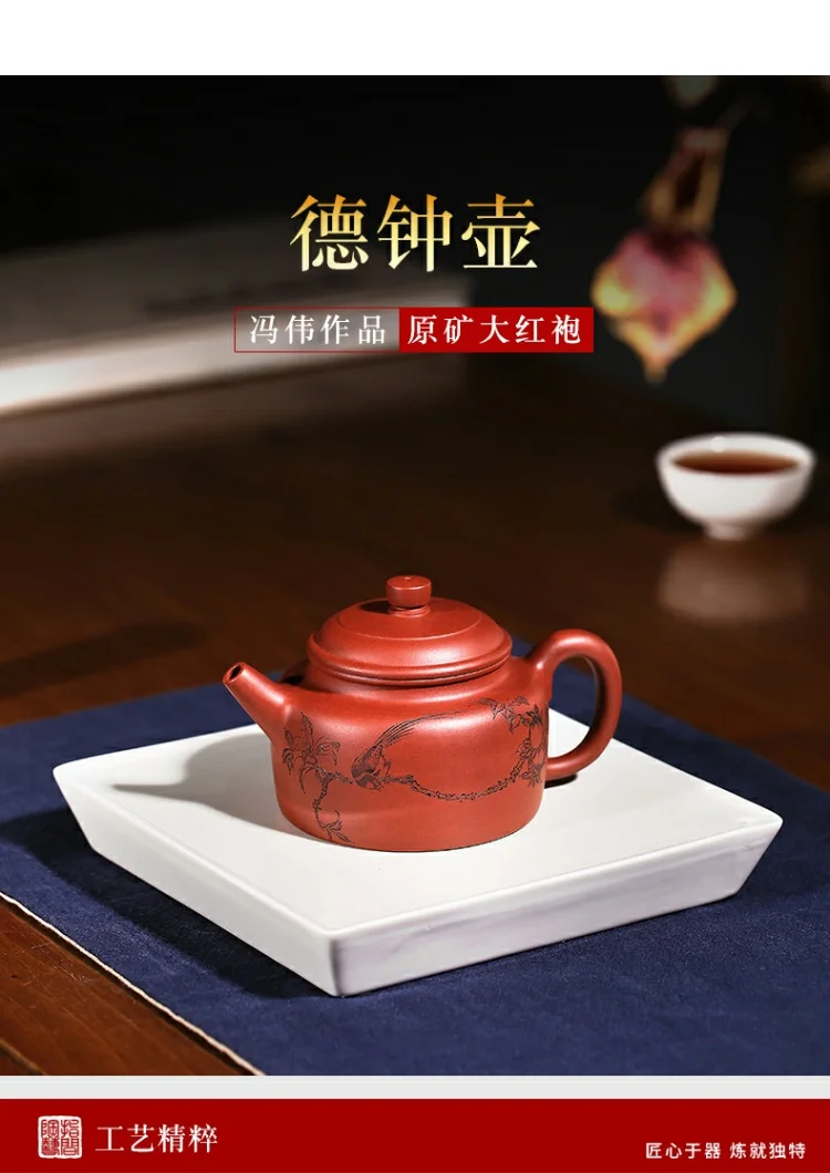 |Boutique yixing are recommended by feng wei pure manual undressed ore mud zhu dahongpao teapot set clock pot