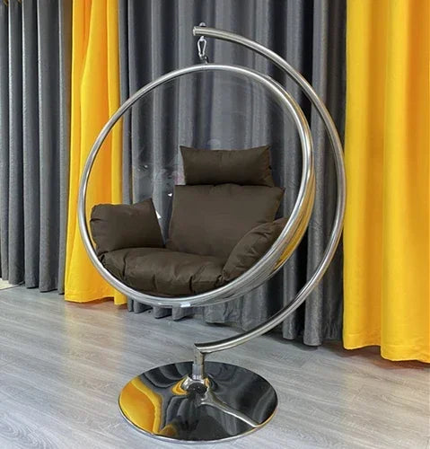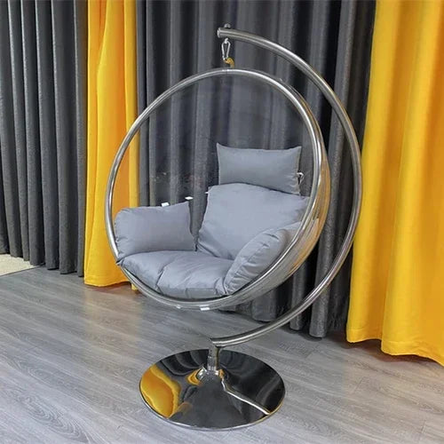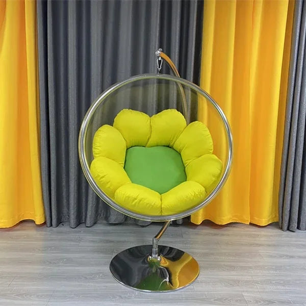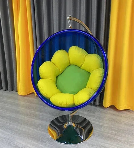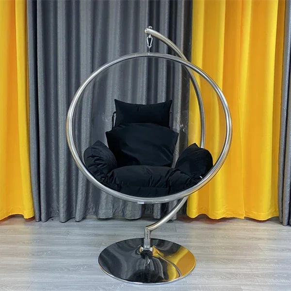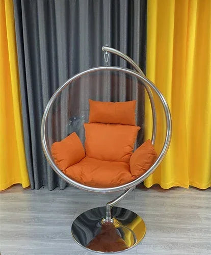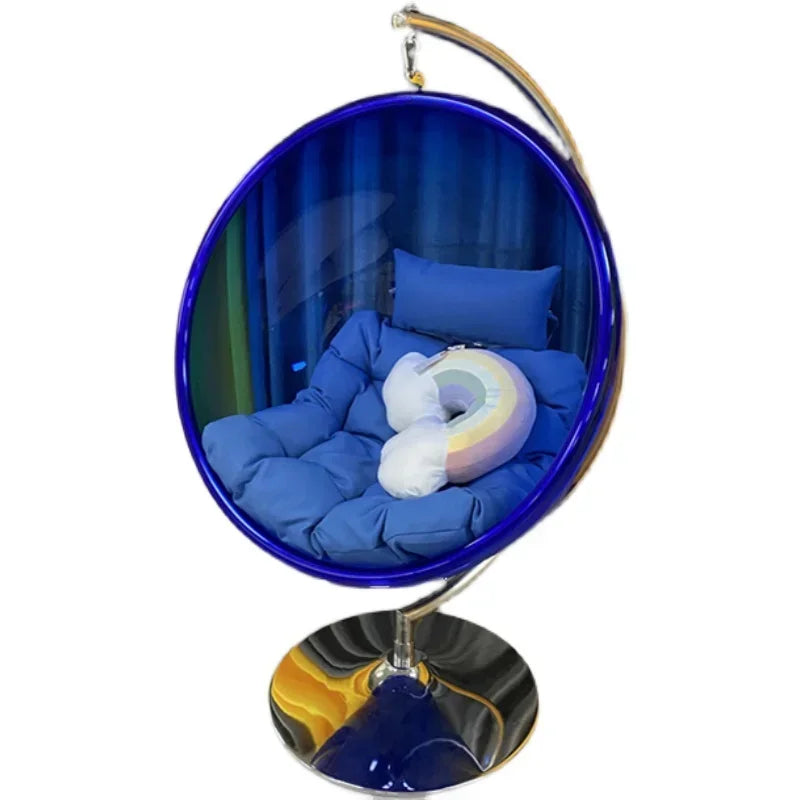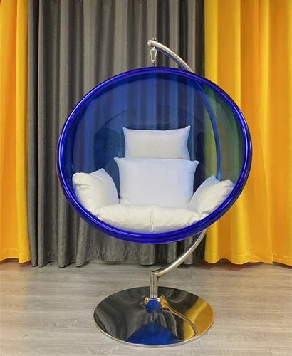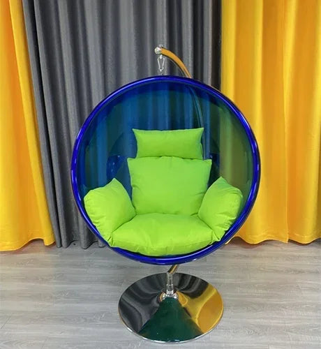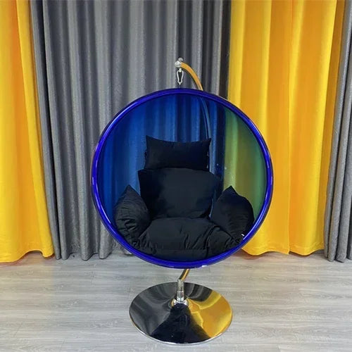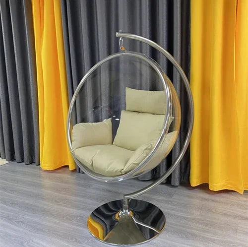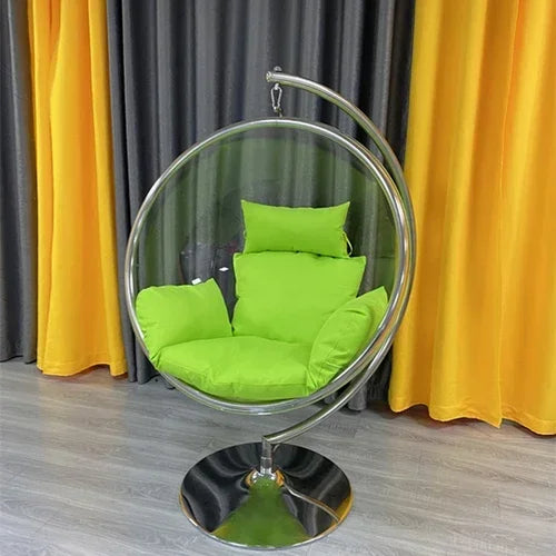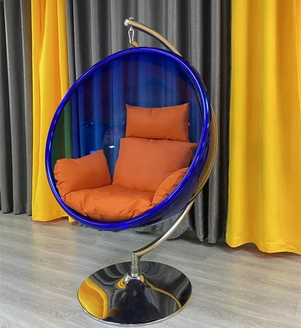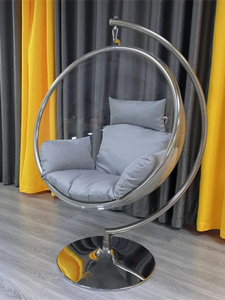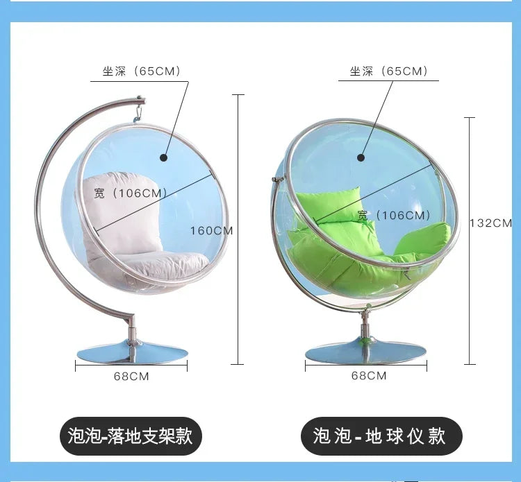 Bubble chair, also known as space hanging chair, is made of high-quality acrylic board, and the cushion is high-quality flannelette; The chair is suspended and rotatable.