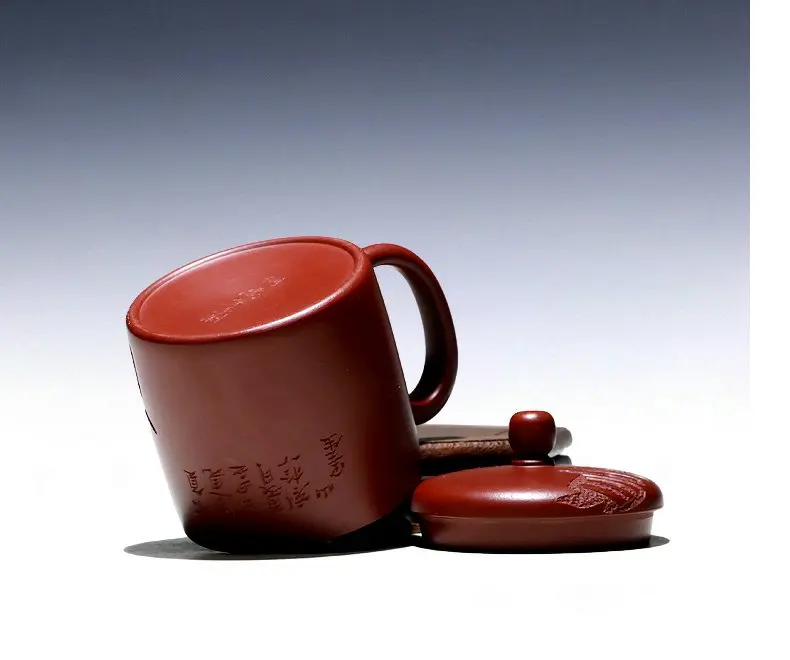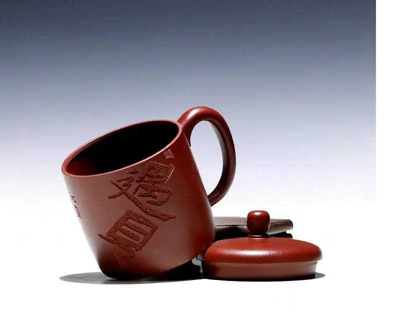 Buyile pot] Yixing purple sand cup hand-made raw ore Dahongpao carved cover cup 520ml